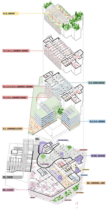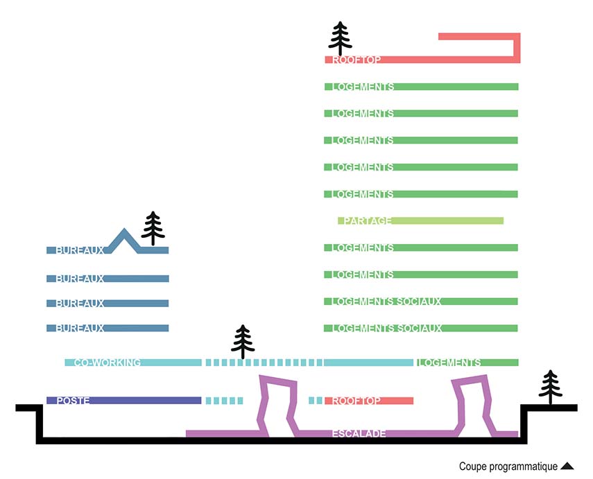 Lors de la phase de conception préliminaire, l'idée de la réhabilitation du bâtiment de Poste à Grenoble par le cabinet d'architectes ECDM Architectes met au centre la soutenabilité comprise comme la récupération d'un morceau de ville, un point de repère pour les habitants, à l'intérieur duquel installer notre époque en créant une filiation entre les deux époques. Refaire, reformater, réutiliser, adapter l'architecture existante en limitant les démolitions. Affirmer donc le concept de soutenabilité à travers l'architecture pérenne