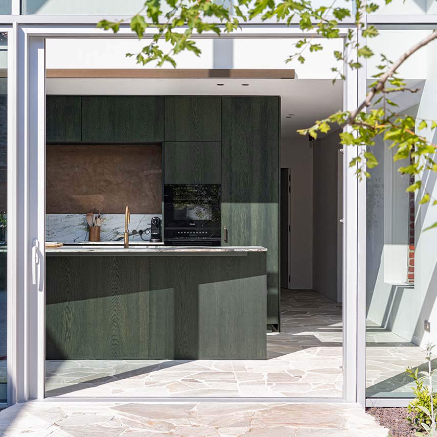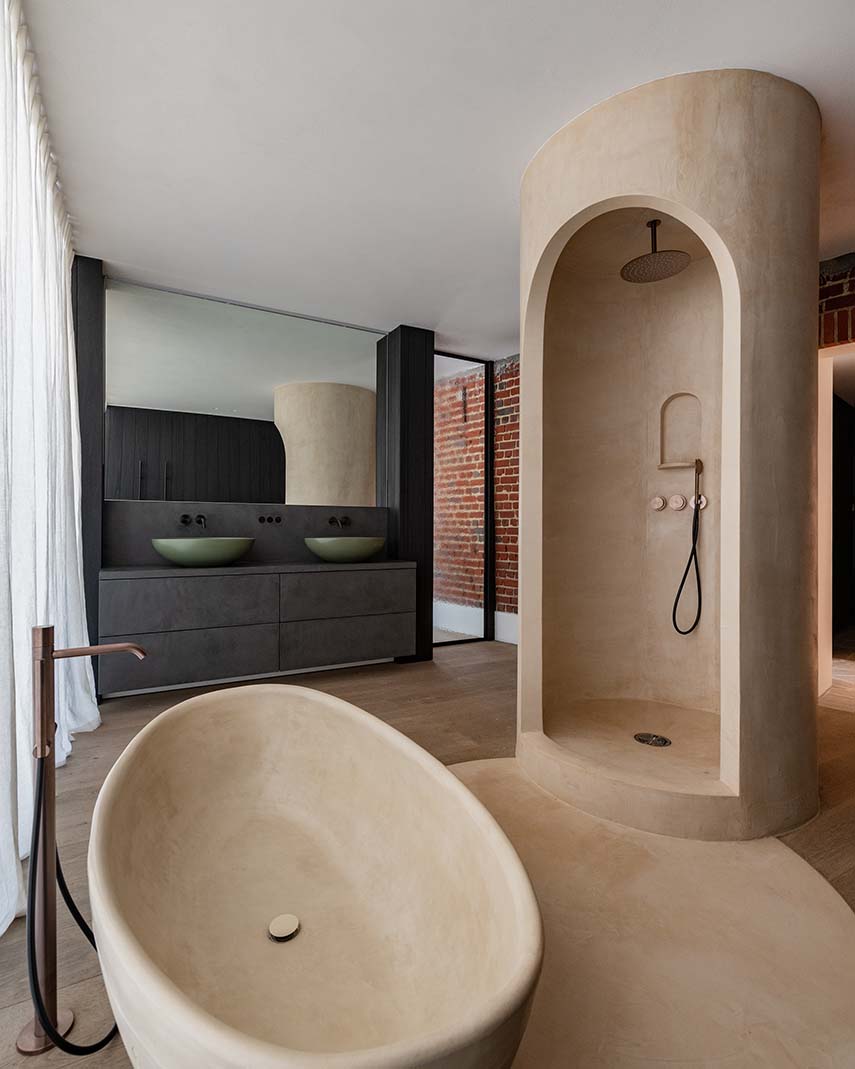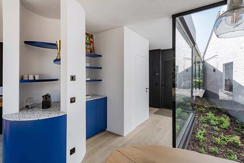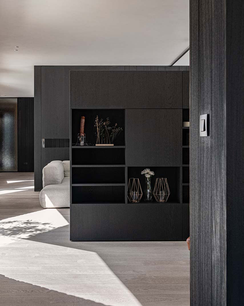 Le cabinet d'architecture belge Objekt Architecten est chargé de la rénovation de la maison Ossel, achevée en 2024. La ferme, située sur un grand terrain, est entièrement rénovée: en conservant les ouvertures d'origine et la cheminée caractéristique, le salon est transformé en un patio. Le nouveau volume, construit contre l'arrière de la ferme, est caractérisé par de grandes baies vitrées et des murs finis en bois foncé à l'intérieur comme à l'extérieur