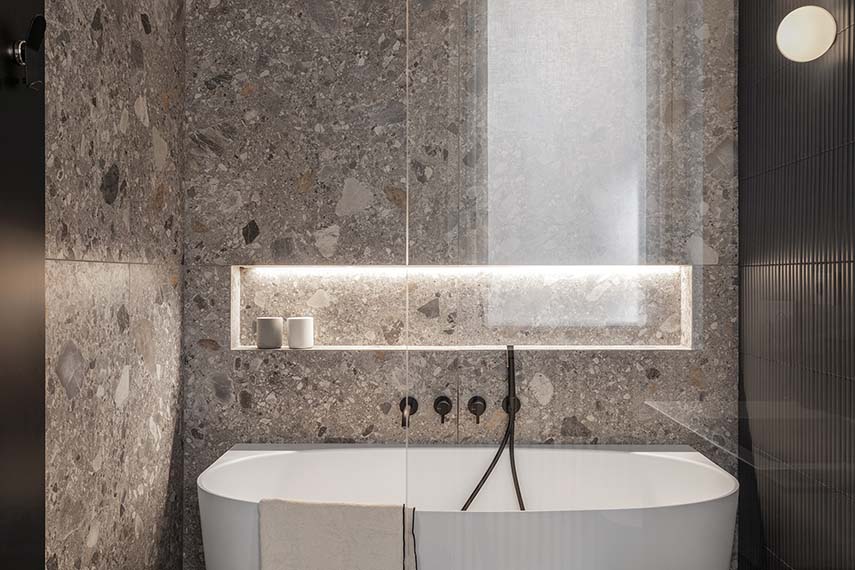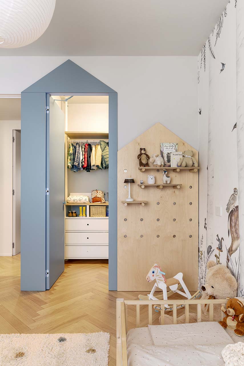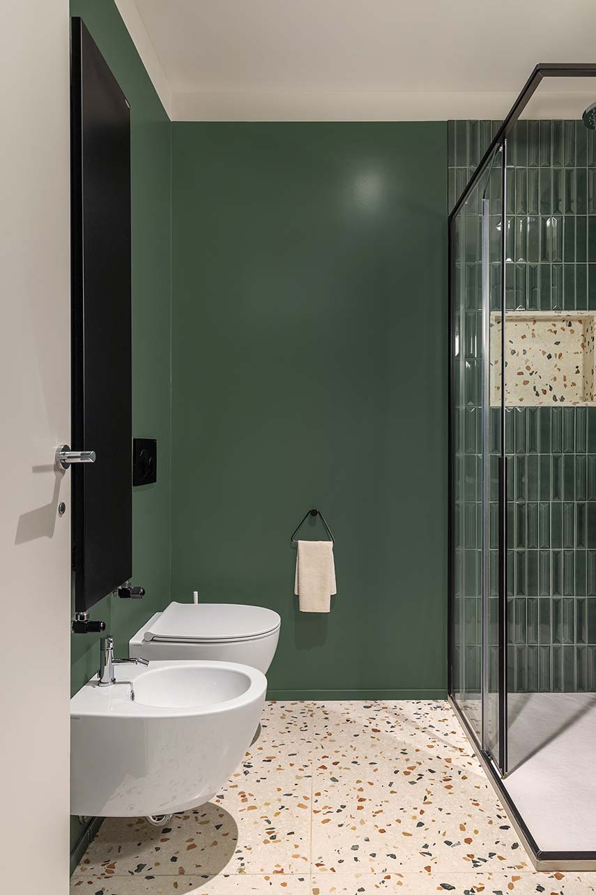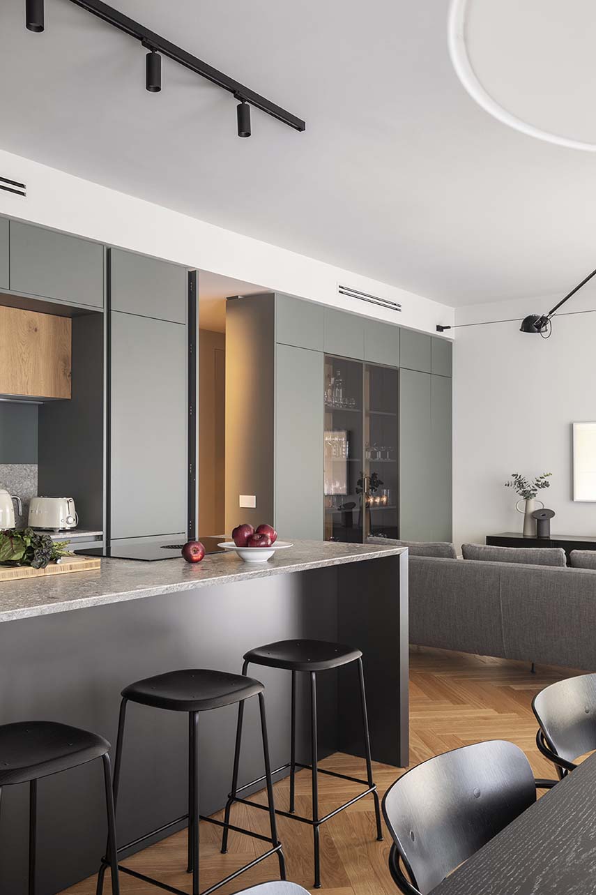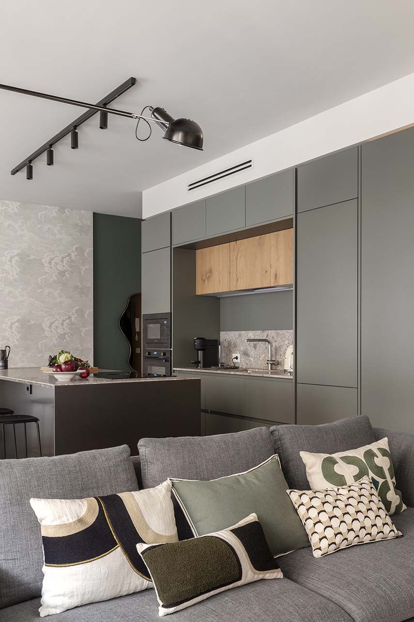 Parmi les projets de design intérieur du studio Lascia La Scia, ce travail a transformé un appartement qui, à l'origine, était caractérisé par une disposition des espaces fermée et peu fonctionnelle, sans une deuxième chambre et avec la cuisine séparée du reste de l'espace. La rénovation a été conçue pour : créer un salon plus spacieux et accueillant, ajouter une deuxième chambre, introduire un bureau/chambre d'amis et optimiser l'espace avec des placards et des armoires escamotables.