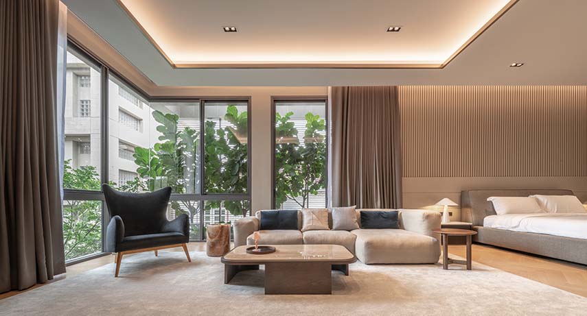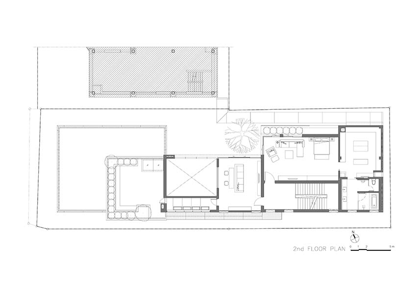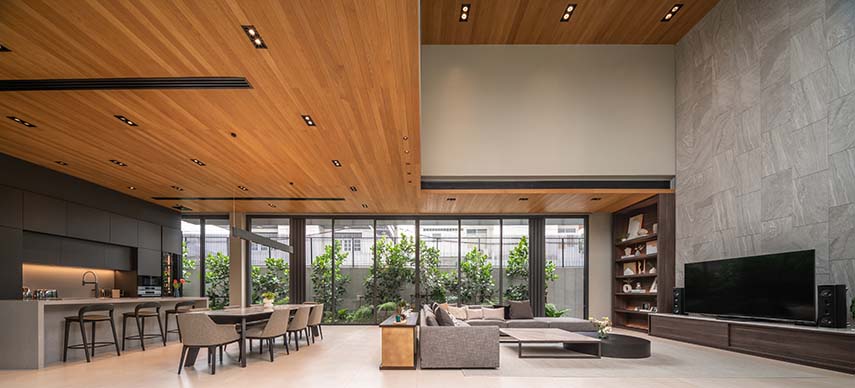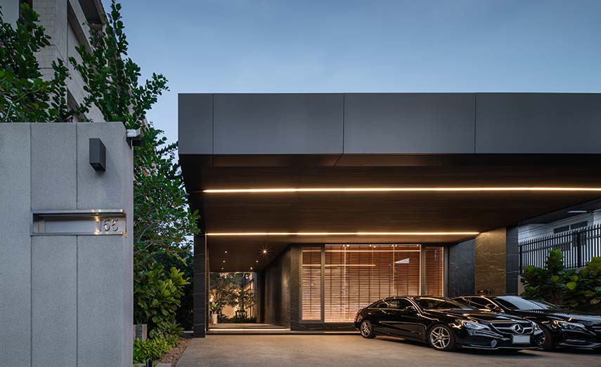 Conçue par le studio thaïlandais archi.smith, qui travaille dans le domaine du projets d'architecture et du design d'intérieur, la Monow House est conçue pour être en étroite relation avec la maison des parents du client située dans la propriété adjacente. Le résultat, après la suppression du mur de séparation, est une cour-jardin commune qui met en relation visuelle le salon du père avec le séjour du fils, une salle de fitness et des parkings supplémentaires pour toute la famille, ainsi qu'une passerelle couverte reliant les cuisines des deux maisons permettant le partage des services.