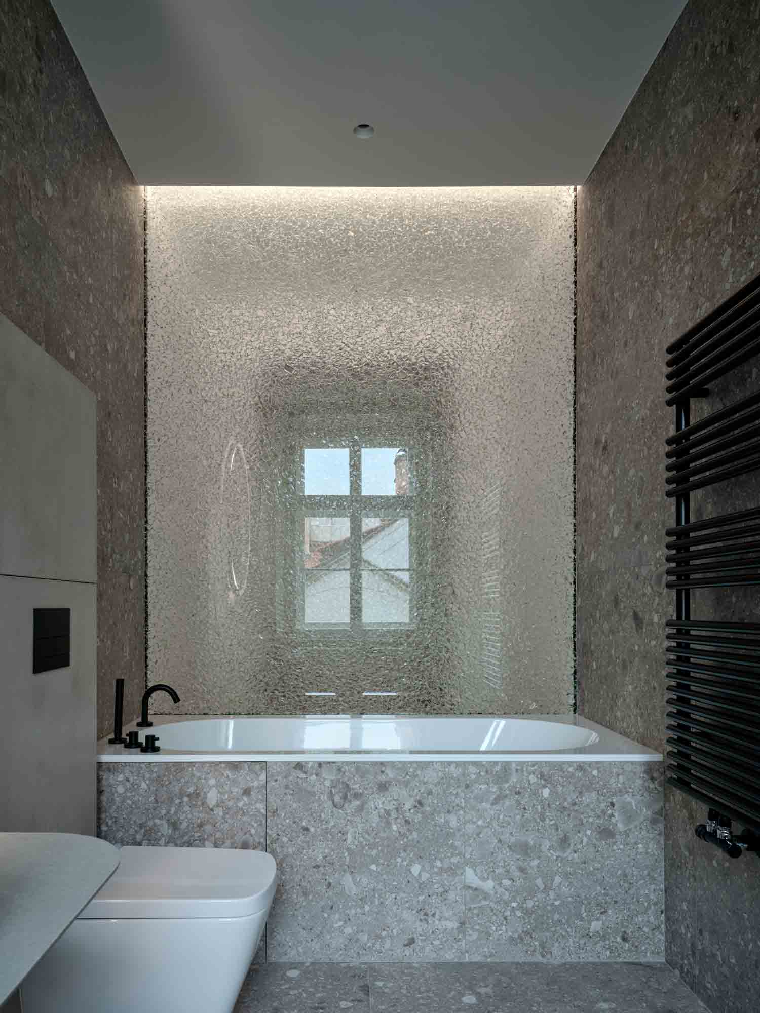 Une maison bourgeoise de la seconde moitié du XVIe siècle, située sur la place Waldstein à Malá Strana, a longtemps attendu une restructuration sensible. La transformation de cette maison historique en galeries, soumise à un statut de monument historique, en appartements modernes a nécessité la conception de nouvelles distributions internes et l'intégration d'éléments contemporains. Le tout a été réalisé avec le plus grand respect pour le bâtiment et sous la supervision des autorités chargées de la protection du patrimoine par le cabinet d'architecture Formafatal.