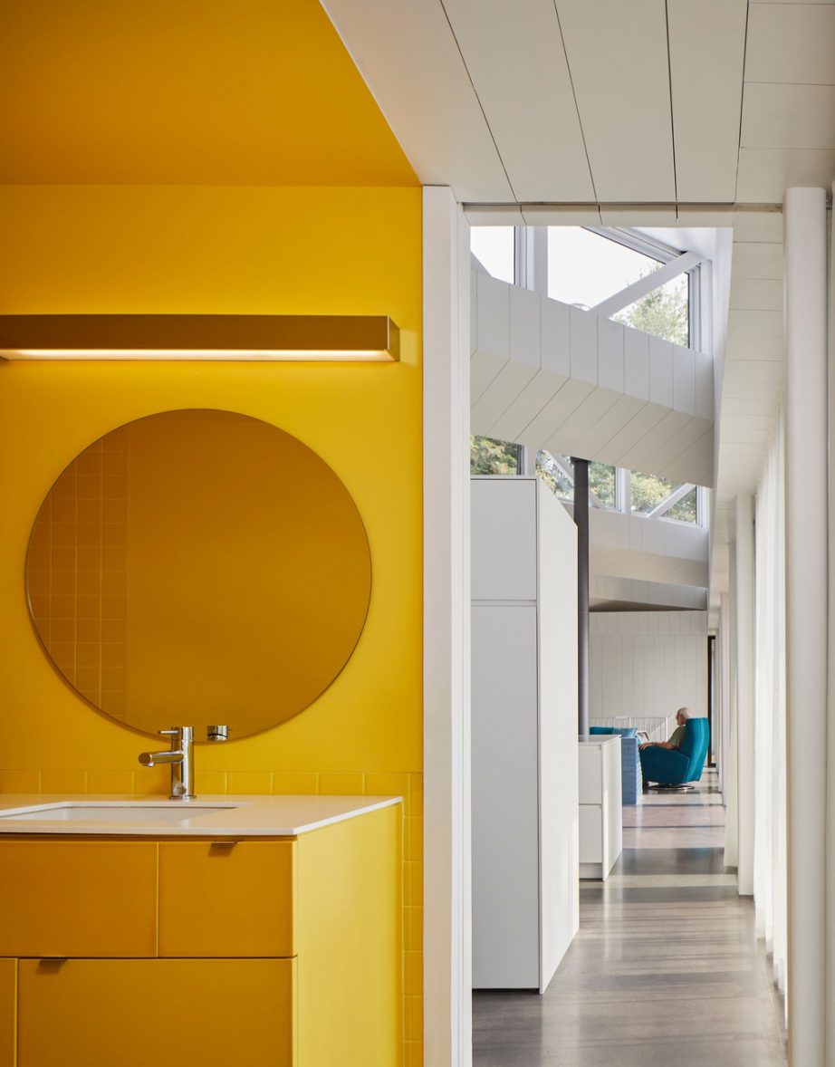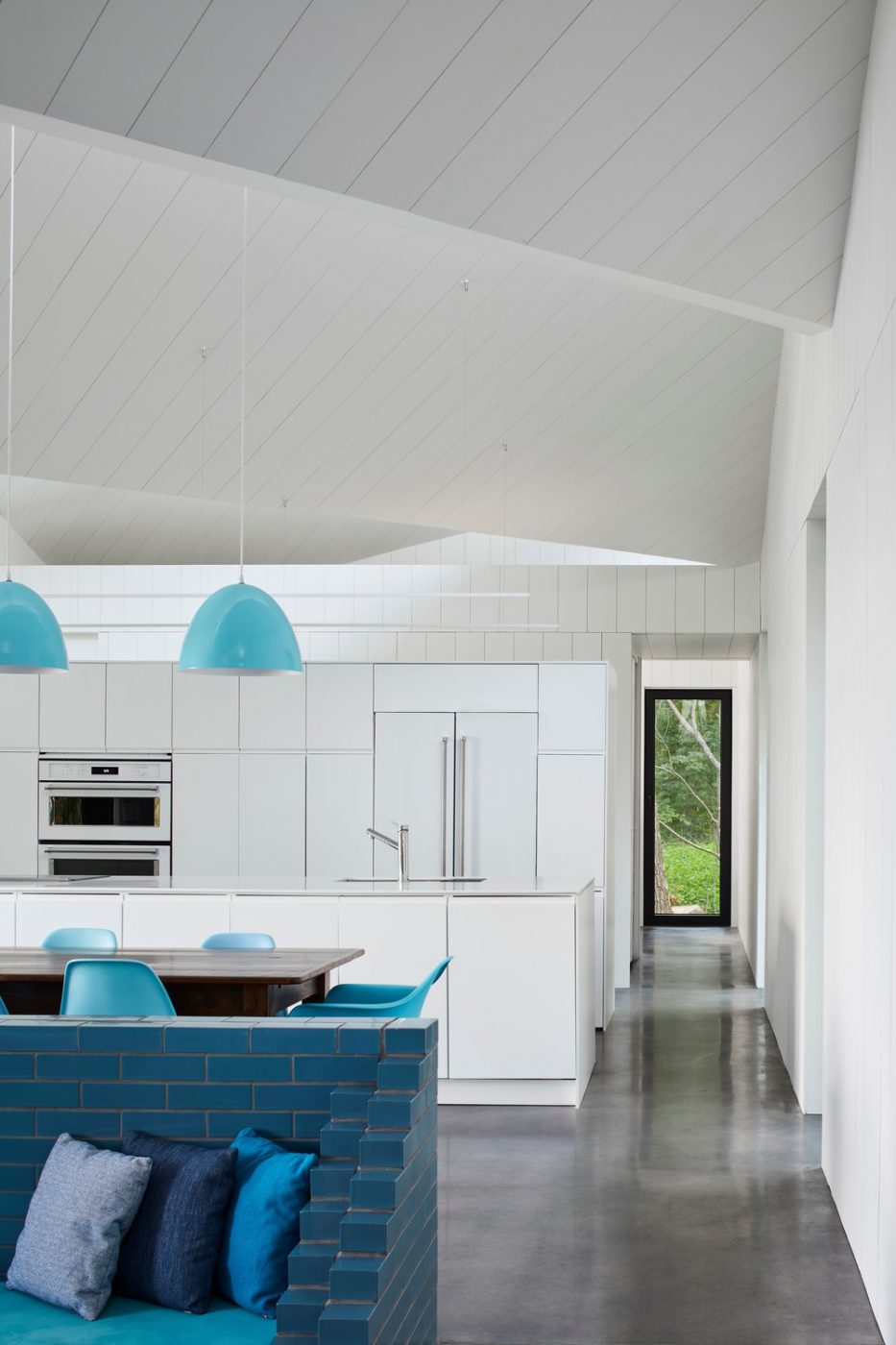 Questa casa vacanze è composta da due volumi accatastati. Il volume inferiore si nasconde nel paesaggio in modo che sia appena visibile. Il volume superiore poggia su quello inferiore e su un molo di cemento per formare un ponte. Questa strategia compositiva delle masse dei volumi consente l'accesso e la permeabilità del sito e sottolinea la forte connessione tra l'edificio e il terreno