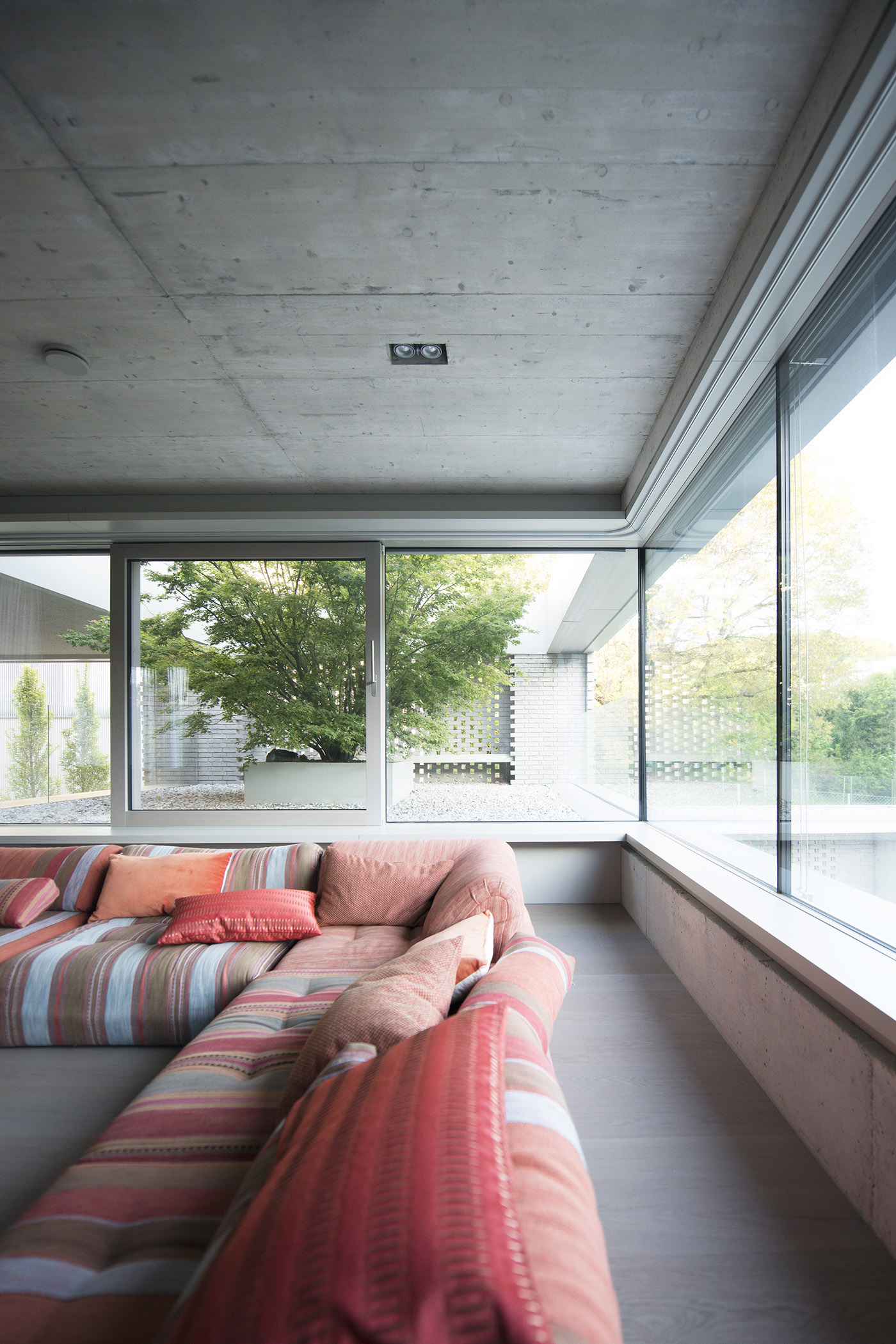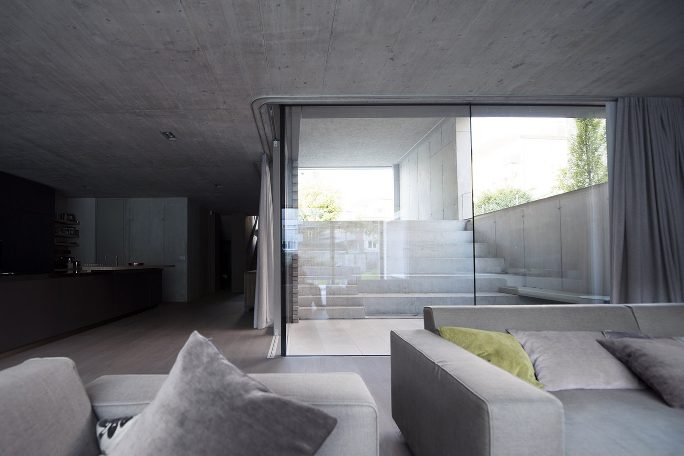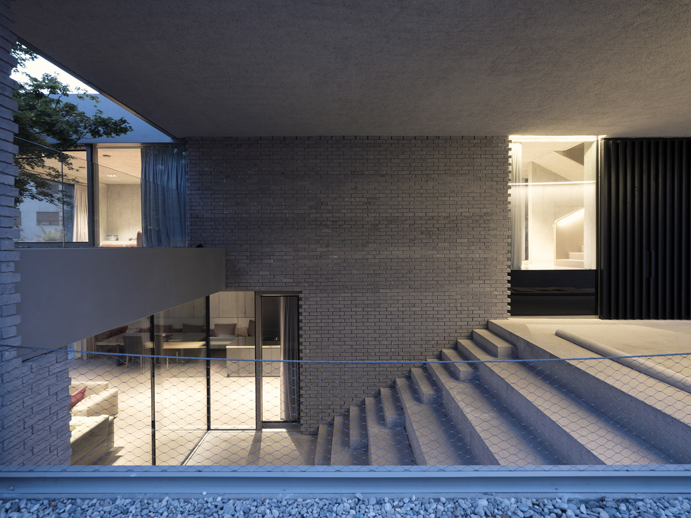 Un quartier résidentiel de la ville de Ljubljana, en Slovénie, à la frontière entre le centre-ville et la banlieue, abrite la Step Level House, exploitant la différence de 2,5 mètres de hauteur entre le niveau de la rue et le terrain. Les architectes de OFIS ont répondu aux besoins de leur client, une famille slovène-anglaise qui souhaitait concevoir deux espaces de vie : un pour la réception et l'accueil des invités, accessible depuis le niveau de la rue, et un autre pour la vie quotidienne de la famille, au même niveau que le jardin