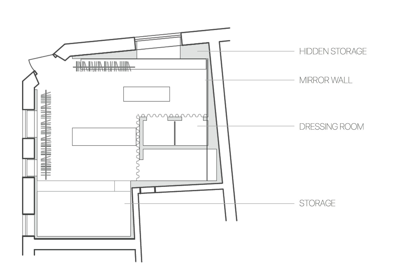 Showroom and tailoring in Kiev. Simple shapes in a historical layout with a complex geometry
