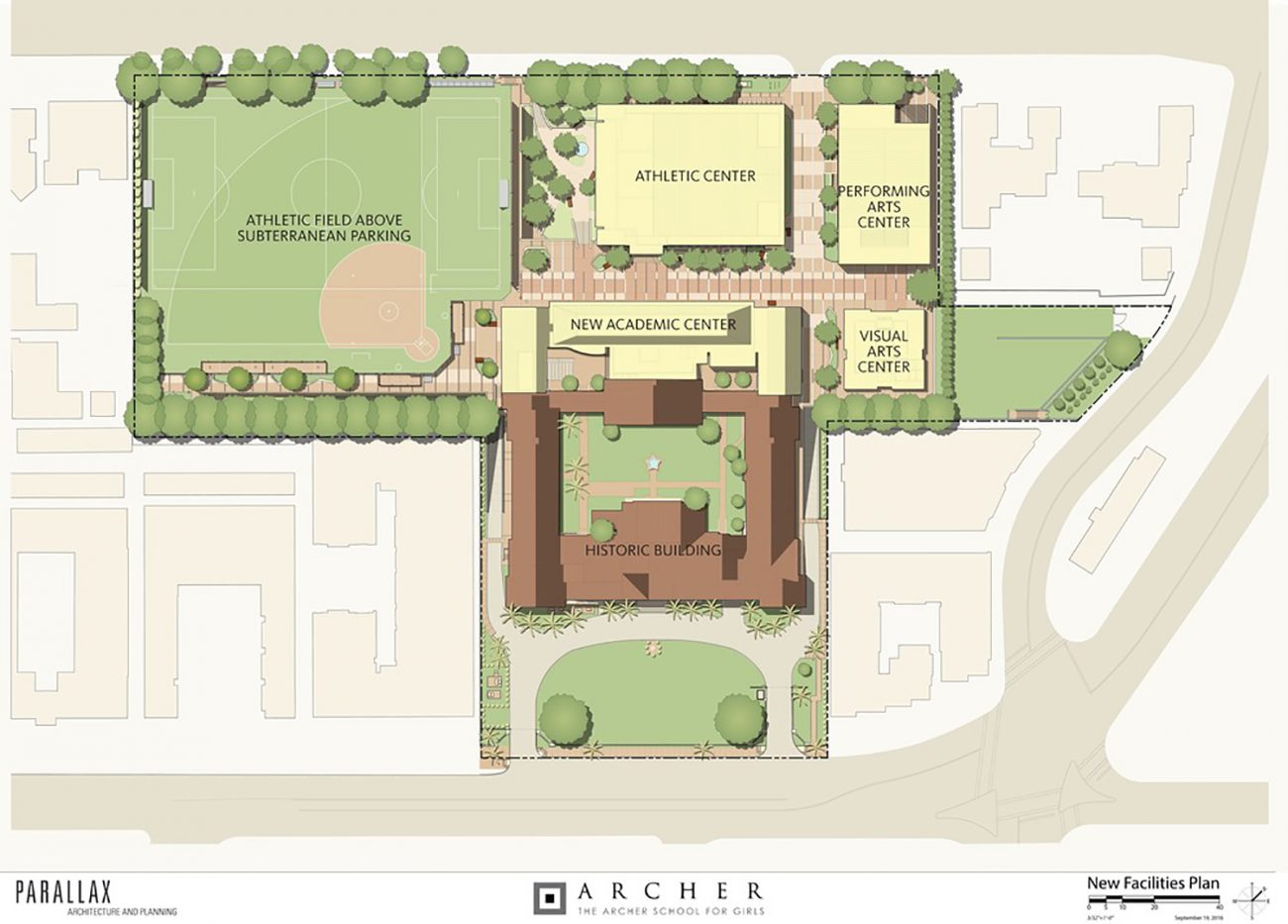 Craig Jameson and Joseph Masotta of Parallax Architects have conceived a master plan that conveys absolute confidence in the girls' potential to succeed, says Head of School Elizabeth English. An elegant design that further elevates Archer's campus as an icon among Los Angeles architecture