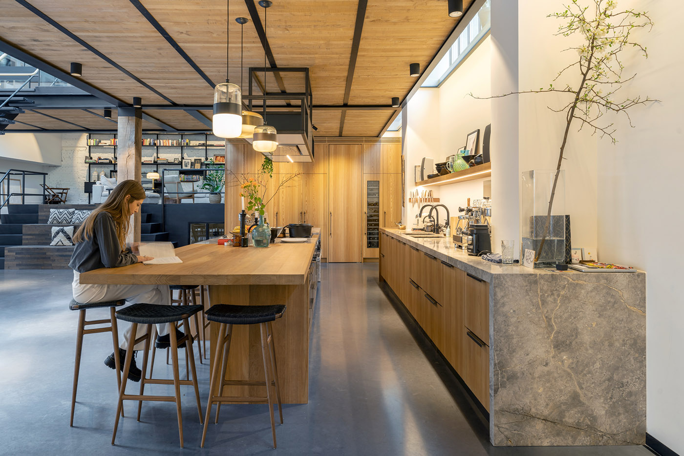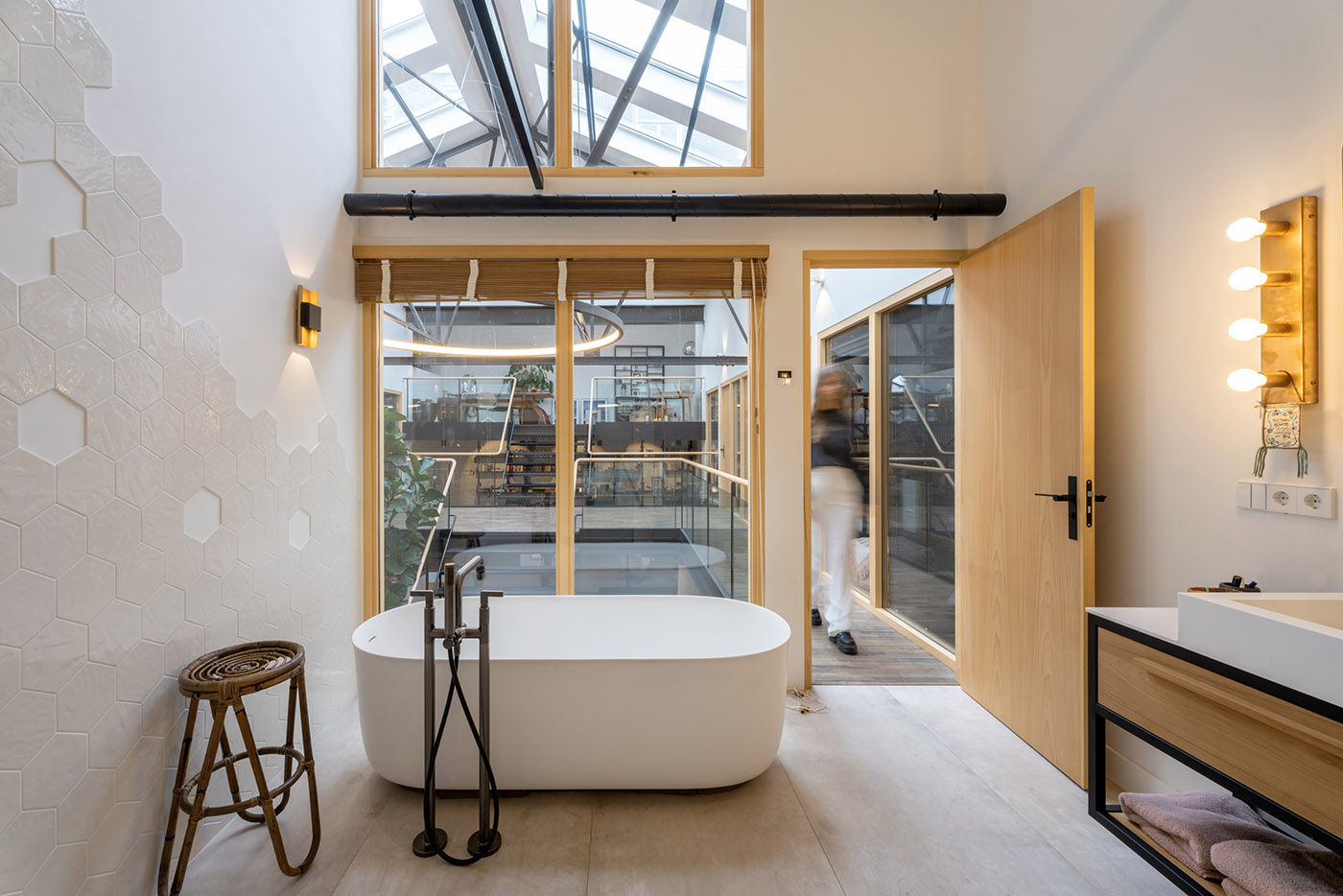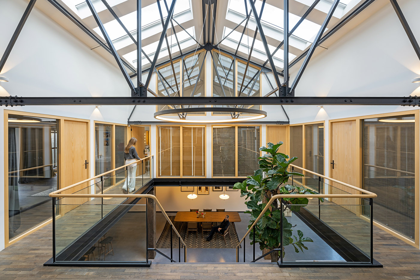 Dix puits de lumière apportent un torrent de lumière naturelle au rez-de-chaussée. Pour exploiter la hauteur du bâtiment, l'architecte Robbert De Goede a créé une nouvelle mezzanine avec une structure en acier et en bois. La nouvelle façade intègre également des détails en acier. Le plafond du rez-de-chaussée est une réplique du toit incliné d'origine