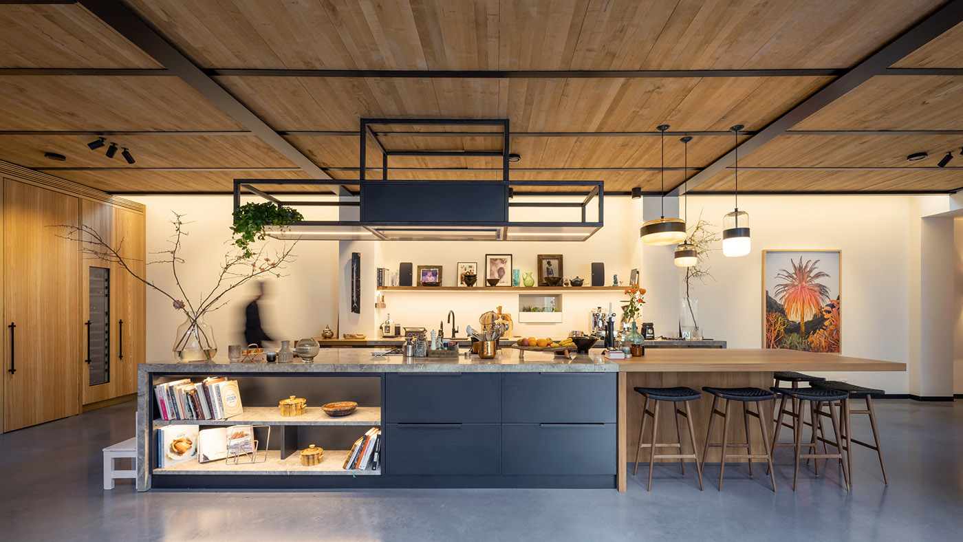Les rampes d'escalier, les portes et les fenêtres de la promenade sont toutes en cèdre jaune, très agréable au toucher et à l'odorat. Le sol est en chêne récupéré, la moquette en alpaga ultra douce, et les finitions en bois d'eucalyptus contribuent également à l'idée de transformer l'architecture en une seconde peau. L'utilisation de plantes a également joué un rôle important, avec un jardin visible depuis de nombreux points de la maison et une grande plante de tabac située au centre de l'espace principal