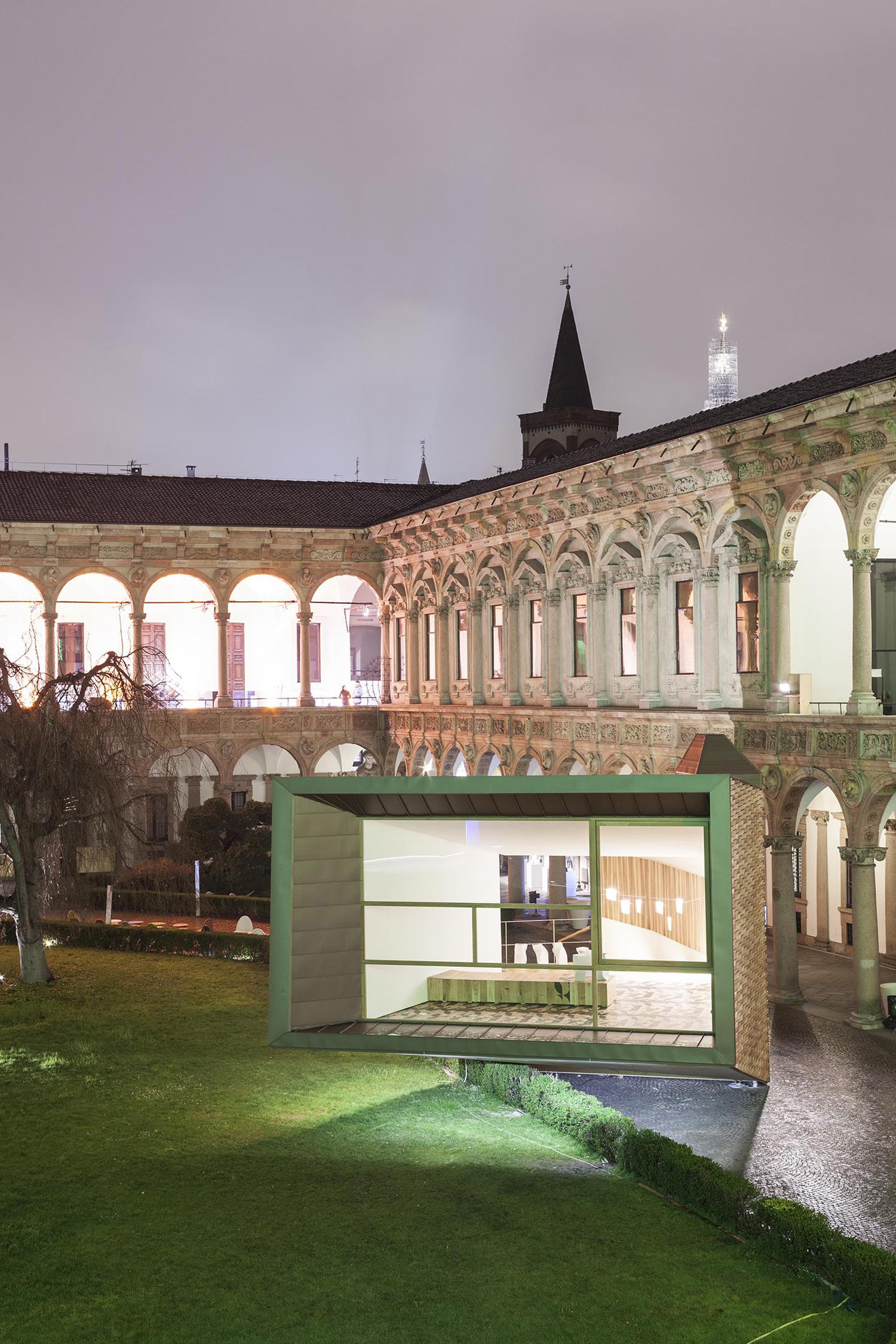 La frontière entre l'intérieur et l'extérieur du bâtiment, entre la conception de l'intérieur et l'architecture, a toujours été une frontière inexistante et fragile composée de trous et d'espaces solides, de fenêtres et de portes toujours prêtes à s'ouvrir. L'architecte Luca Scacchetti a porté son attention sur cette frontière incohérente et pourtant fondamentale. Cela signifie considérer quelque chose à la fois hybride et une séparation qui est une connexion créant une installation pour le Fuorisalone 2013 à Milan, qui se tiendra dans la cour du XVIIe siècle de l'Université d'État de Milan