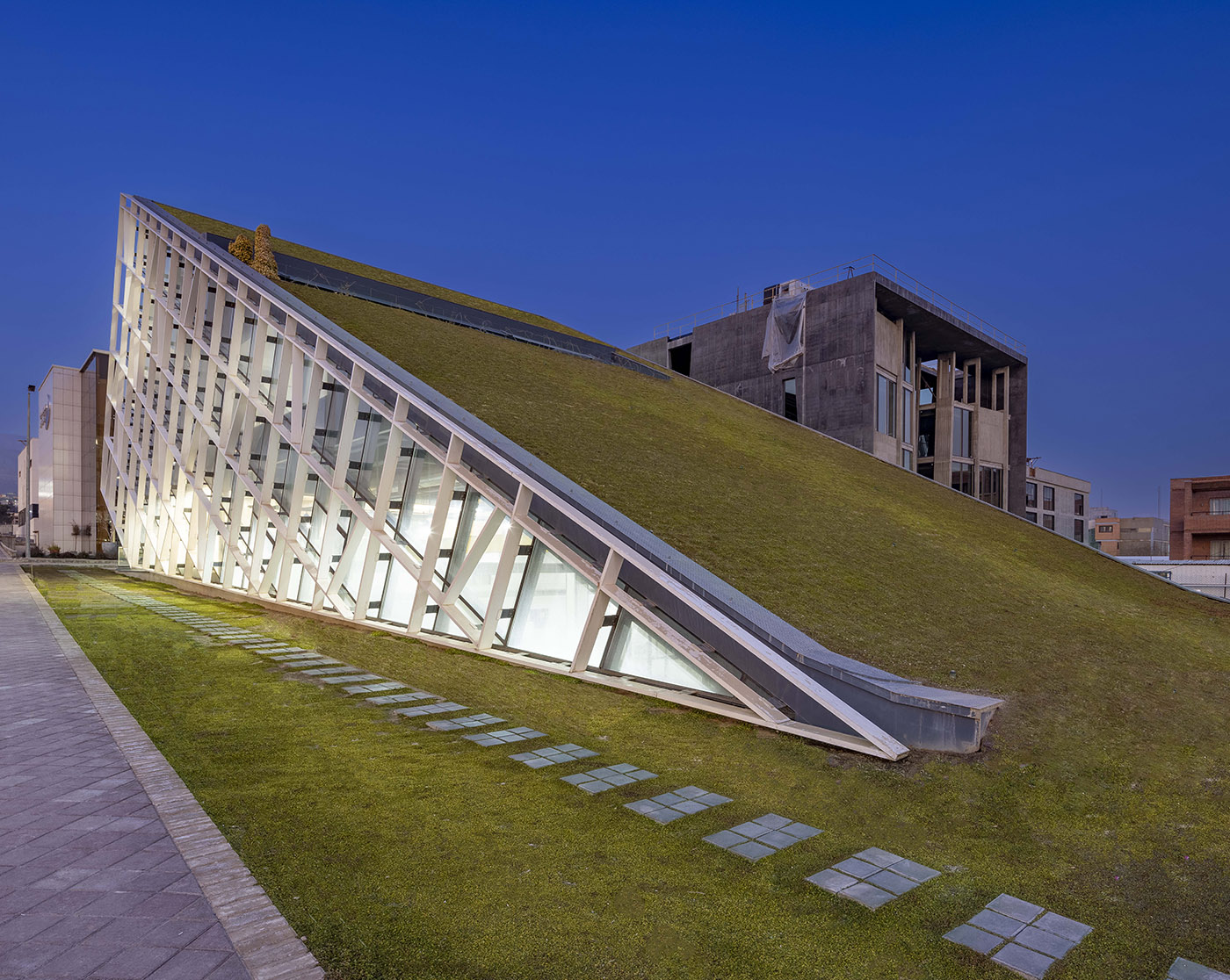 The project by architecture firm New Wave, in Pardis Technology Park on the outskirts of Tehran, aims to the build a platform for research and innovation aimed at improving people's future. Following consideration on the continuity of the vistas, heat control, and function of the building, the architectural team generated the design of Turbosealtech