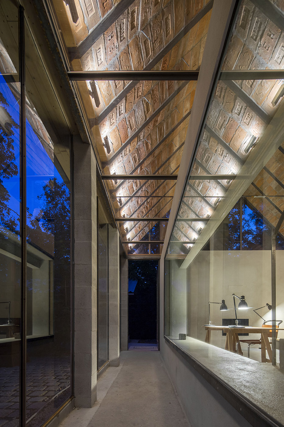 Un des projets de rénovation signé Architekti B.K.P.Š s'inscrit dans un site qui abritait une usine de briques avec la maison du propriétaire attenante. La maison d'origine, restaurée dans les années 90, était une maison traditionnelle typique avec un porche. Le porche, élément architectural caractéristique des maisons de la région, sert de passage et d'interaction entre l'intérieur et l'extérieur, régulant également les effets du soleil en été et en hiver.