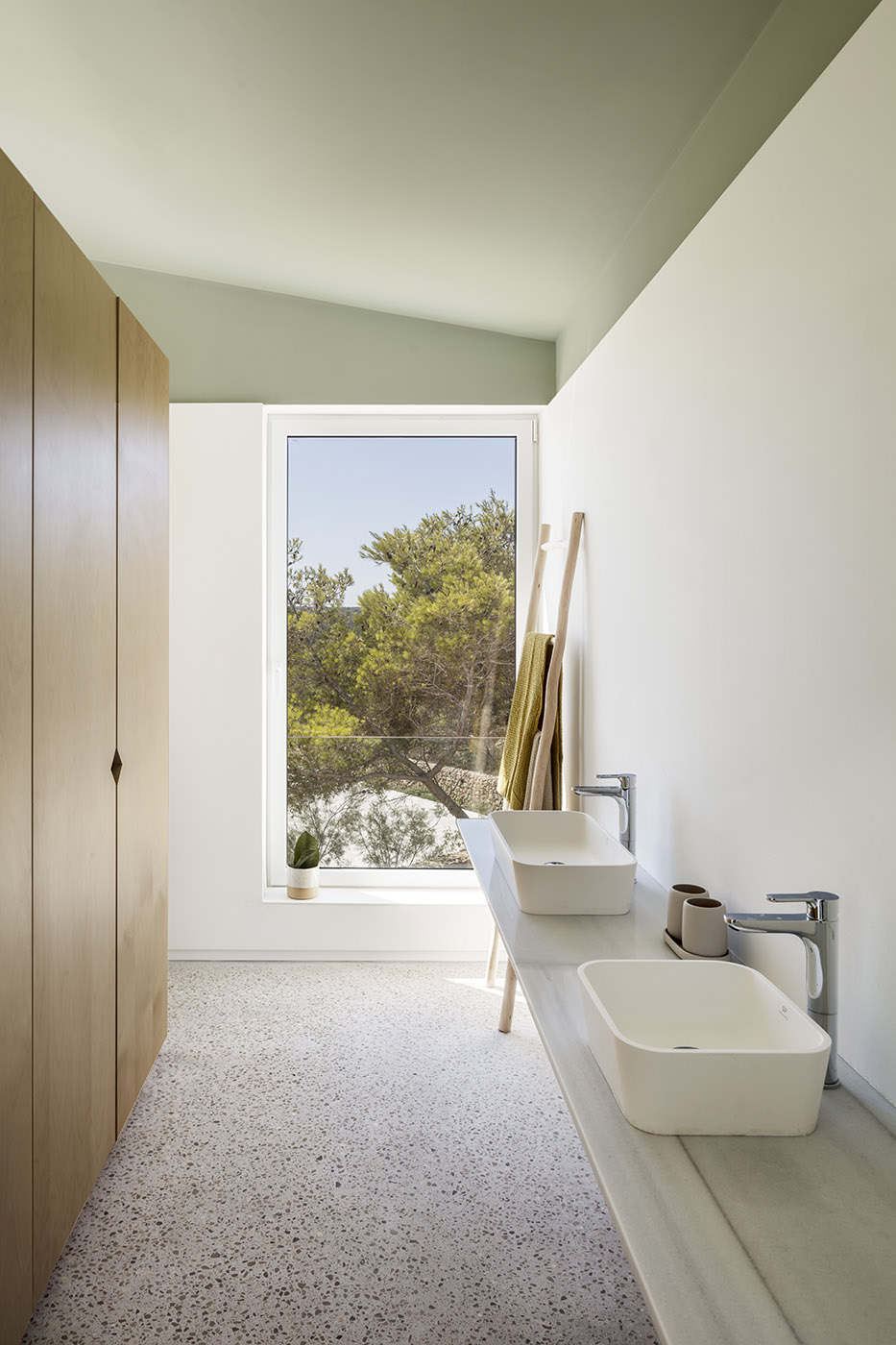La maison, conçue par Nomo Studio, se développe horizontalement en exploitant la configuration du terrain pour embrasser les meilleures vues du paysage environnant. Sa surface articulée permet de créer de petits volumes polyédriques qui, en s'agrégeant, donnent naissance à une composition dynamique et originale. L'ensemble des volumes forme un pont suspendu qui donne son nom à la résidence. Pour respecter au mieux la nature existante, la distribution interne a été pensée en divisant la maison en différentes unités fonctionnelles, intégrées au contexte et capables de dialoguer avec la topographie naturelle.