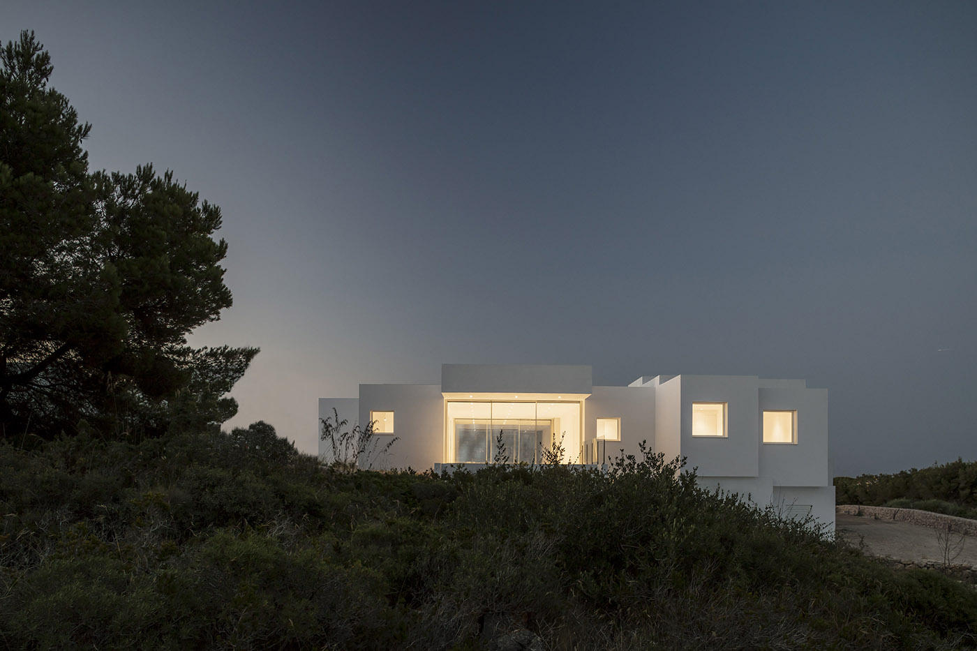La nécessité du client était d'avoir 5 chambres à coucher, un garage et une piscine, le tout sans oublier le fort désir de pouvoir profiter de la vue à la fois sur la mer et sur les paysages de montagne. En réponse à ce besoin, Nomo Studio, spécialisé dans les projets d'architecture résidentielle, ont envisagé d'organiser le plan en partant d'une plateforme qui a rapidement été surnommée "le passerelle" et qui relie les deux vues