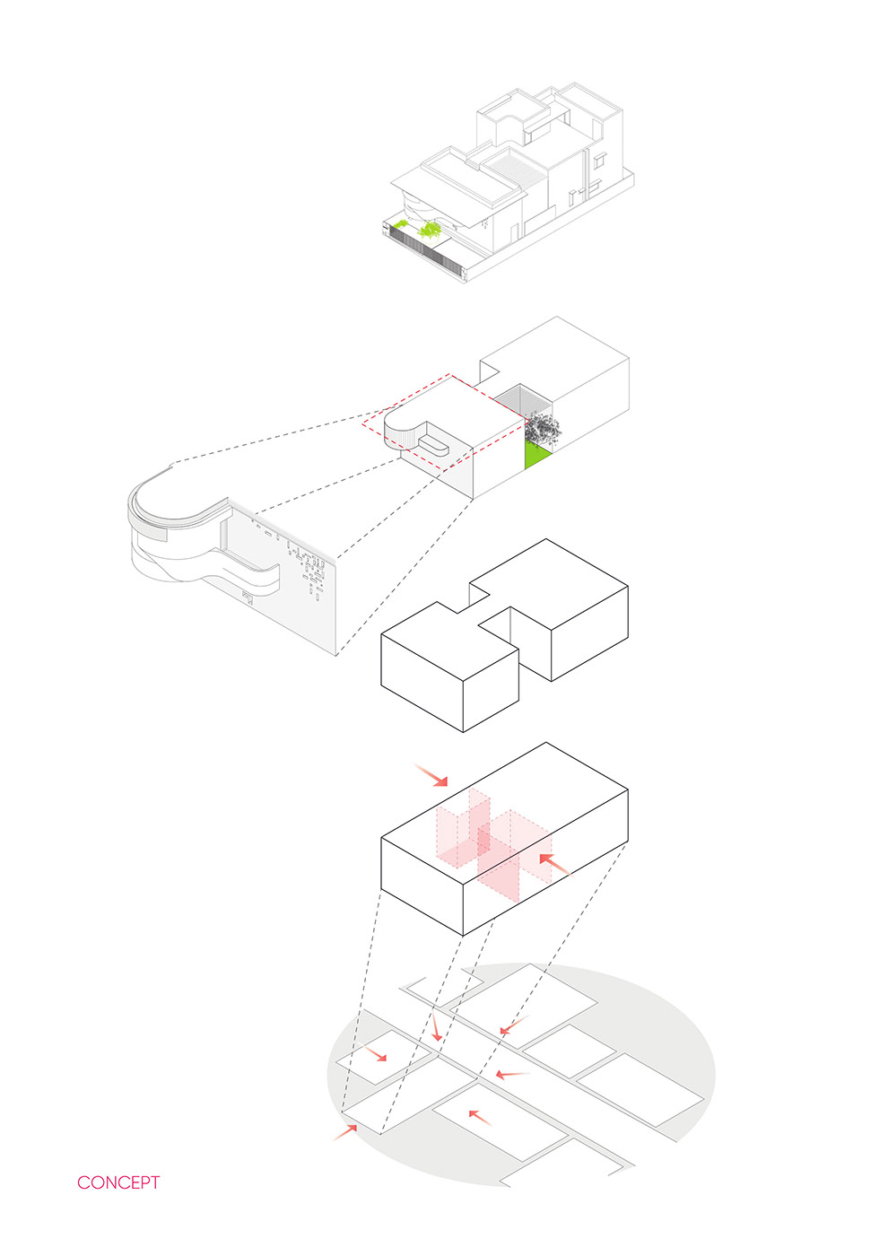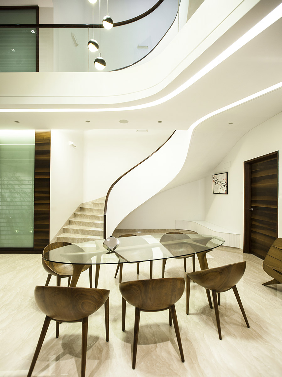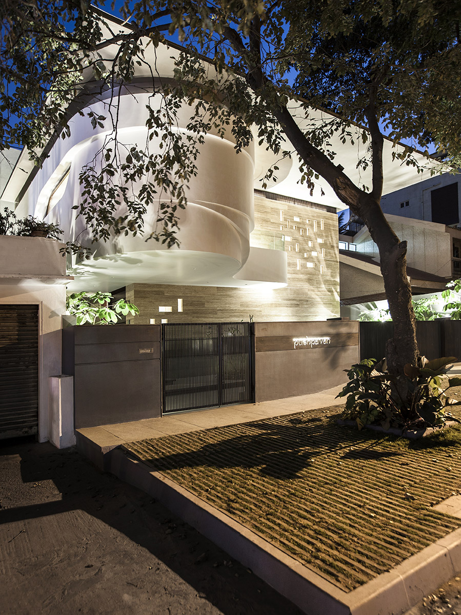 La villa B One est située dans un quartier typique indien et longe une route très fréquentée. La densité du tissu résidentiel du quartier et la proximité des autres bâtiments ont poussé à concevoir une planimétrie inversée, amenant le jardin à l'intérieur.