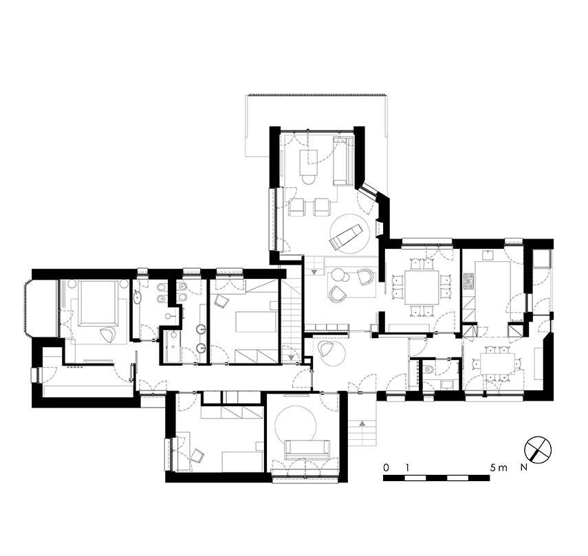 Villa Rossi représente l'une des quatre villas commandées en 1959 pour les cadres d'Olivetti. Conçue selon les principes du Bureau de Consultation pour les Logements des Employés (UCCD) et sous la direction d'Emilio Aventino Tarpino, la villa reflète l'évolution architecturale promue par Eduardo Vittoria à Ivrea. Caractérisée par des toits plats, des loggias et des revêtements en grès de différentes tailles et teintes, la villa incarne une transition vers une esthétique plus vivante et colorée, s'éloignant des architectures industrielles plus austères précédentes.