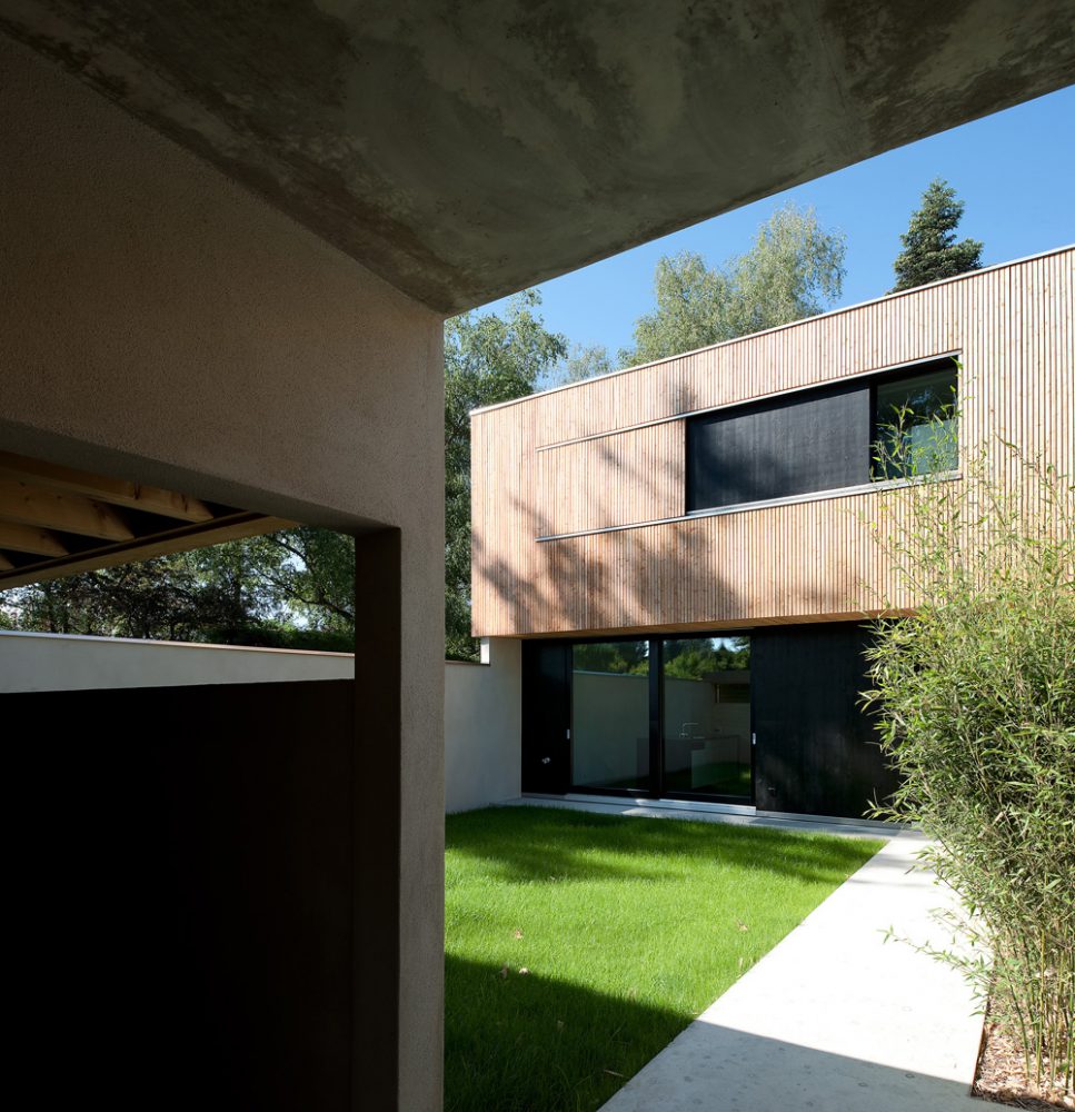 Le bâtiment conçu par l'architecte Christian von Düring à Le Grand-Saconnex, en Suisse, se compose de trois maisons individuelles et respecte les principes du développement durable dans le but de minimiser l'impact environnemental tout au long de son cycle de vie