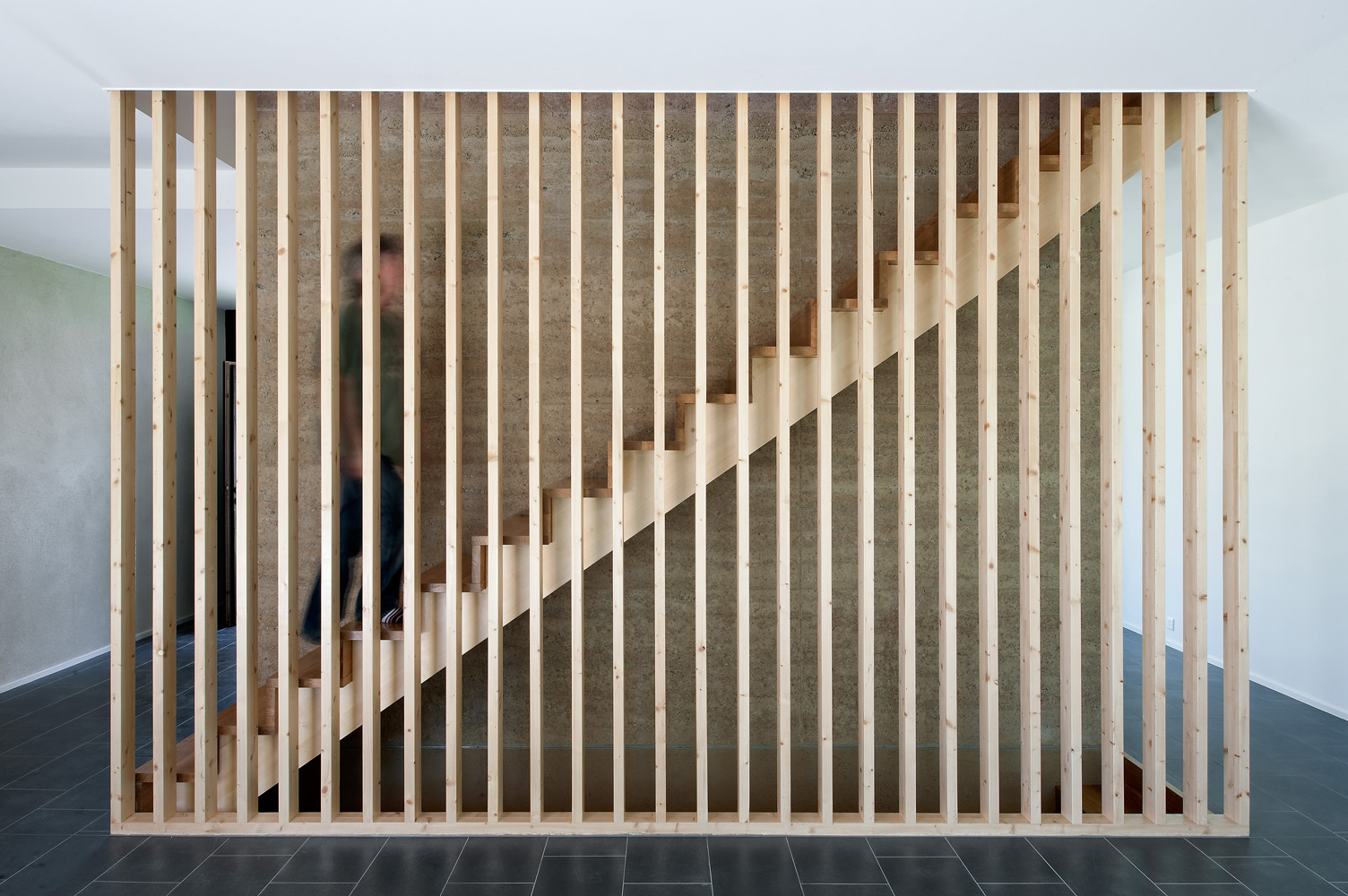 L'architecte Christian von Düring préfère l'utilisation de matériaux naturels tels que la terre battue, la terre cuite, la maçonnerie et le bois. Le choix des matériaux a été fait en fonction de leur niveau d'énergie grise et de leur durabilité. La construction se compose d'une série de murs en maçonnerie au rez-de-chaussée, qui soutiennent un volume en bois au-dessus. Basée sur une construction rurale locale, la maçonnerie protège le bois de la dégradation due à l'humidité et compense en même temps le manque de bois. De plus, une masse de terre battue provenant de l'excavation des fondations pénètre chaque maison de haut en bas. Une régulation passive de la température et de l'humidité est ajoutée