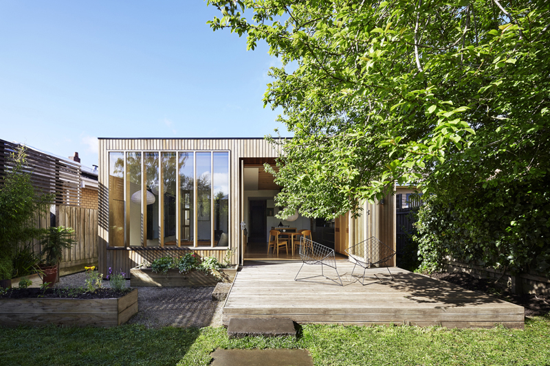 A wooden box, designed by the Moloney Architects architectural studio located in Australia, represents the contemporary extension of a Victorian home, and meets the different needs of the resident family with more spacious environments