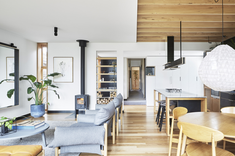The materials used are mostly simple and eco-sustainable: formply, wood for windows and exposed beams, Blackbutt floor with cedar cladding