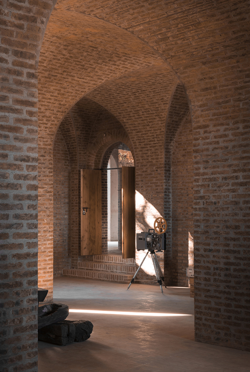 L'ancien cinéma transformé en musée du café rappelle une cathédrale dans un monastère. L'espace de stockage du café se trouve à un niveau inférieur et se caractérise par des voûtes croisées, créant un espace similaire à une cave. L'espace de traitement du café est situé à un niveau intermédiaire et combine des voûtes en briques et des poutres en acier: un espace ouvert et continu avec vue sur le paysage de la vallée