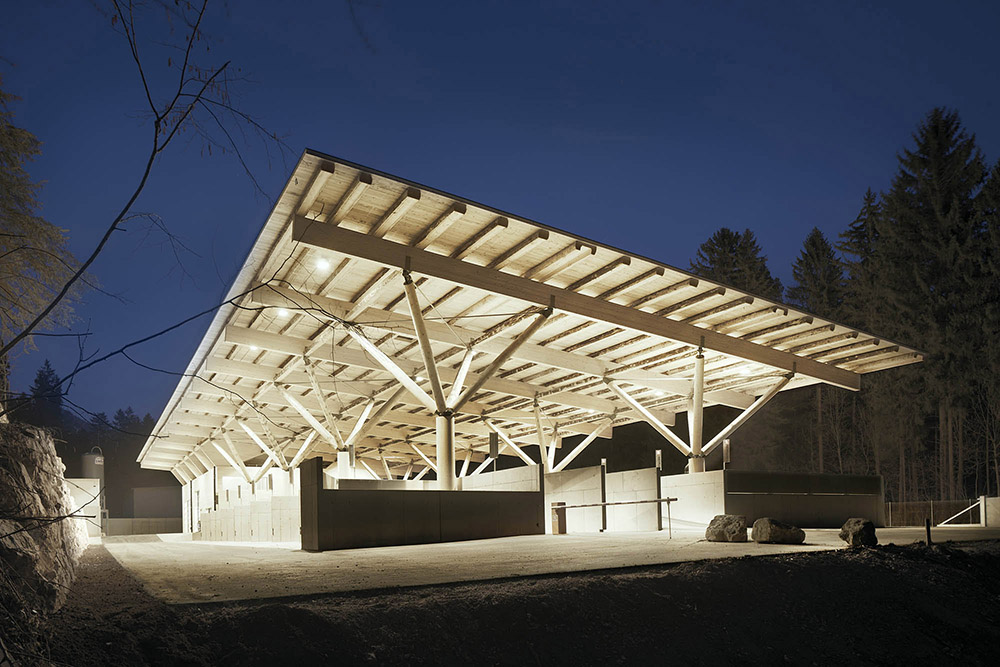 Dans la conception structurelle du Centre Blumenegg, le studio Hammerer a utilisé 8 grands supports en bois à partir desquels 15 poutres en bois sont articulées pour suivre calmement le flux des forces. L'interaction des poutres lamellées, des troncs d'arbres non finis et des raccords métalliques témoigne de la collaboration réussie entre les architectes, les ingénieurs et le client
