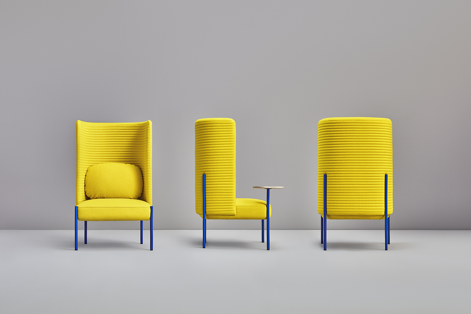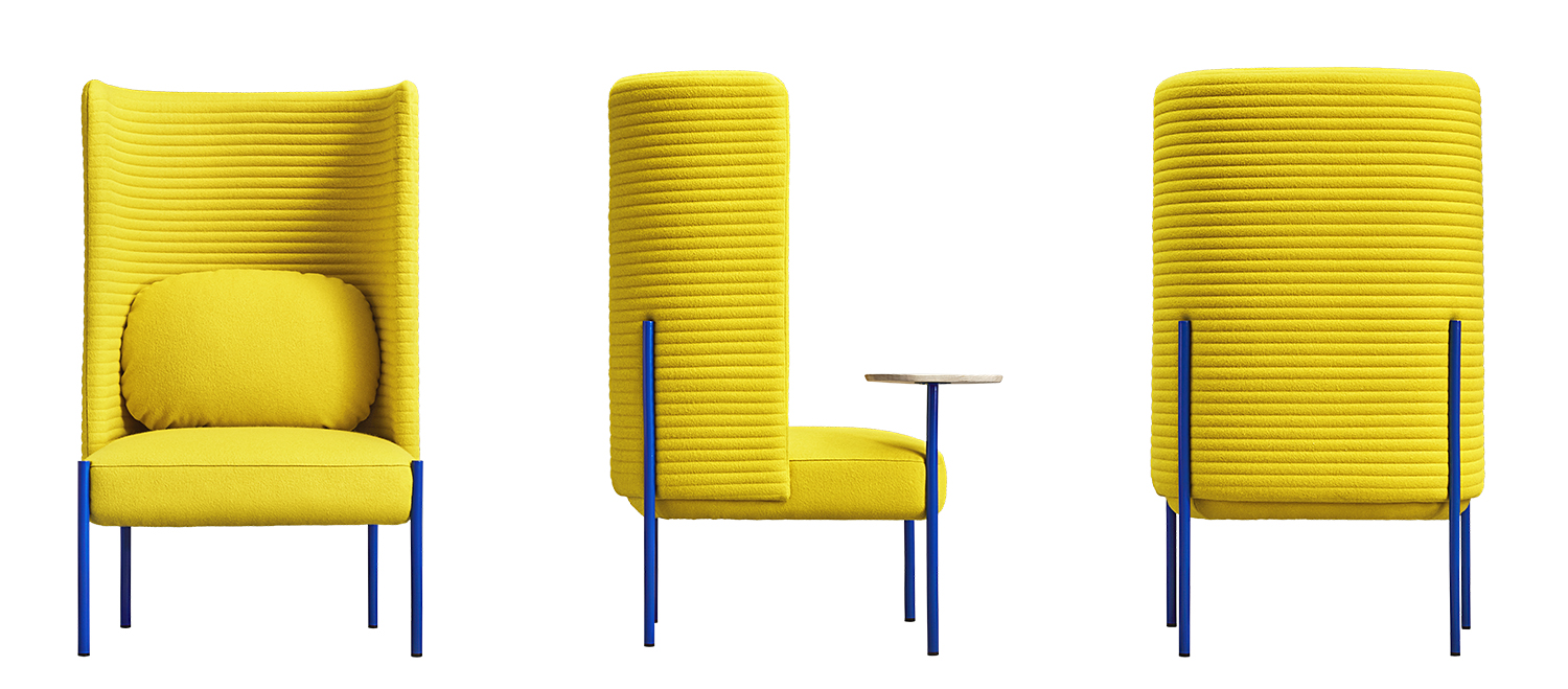Privacy e contract. Seduta avvolgente dai colori forti per rendere confortevole l’attesa