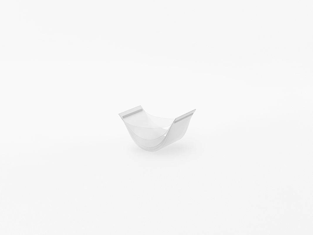 Questo ha permesso allo studio di concentrarsi su un valore intrinseco della morbidezza e decidere di adottare un approccio differente nell'esprimere mobili morbidi e confortevoli. Per spingere i confini del comfort, piuttosto che utilizzare materiali standard di imbottitura come schiuma di poliuretano, cotone, piumaggio o molle o addirittura cuscini, hanno deciso per l'uso di lastre di policarbonato spesse 1,5 mm, la cui morbidezza può essere cambiata attraverso la laminazione e la piegatura
