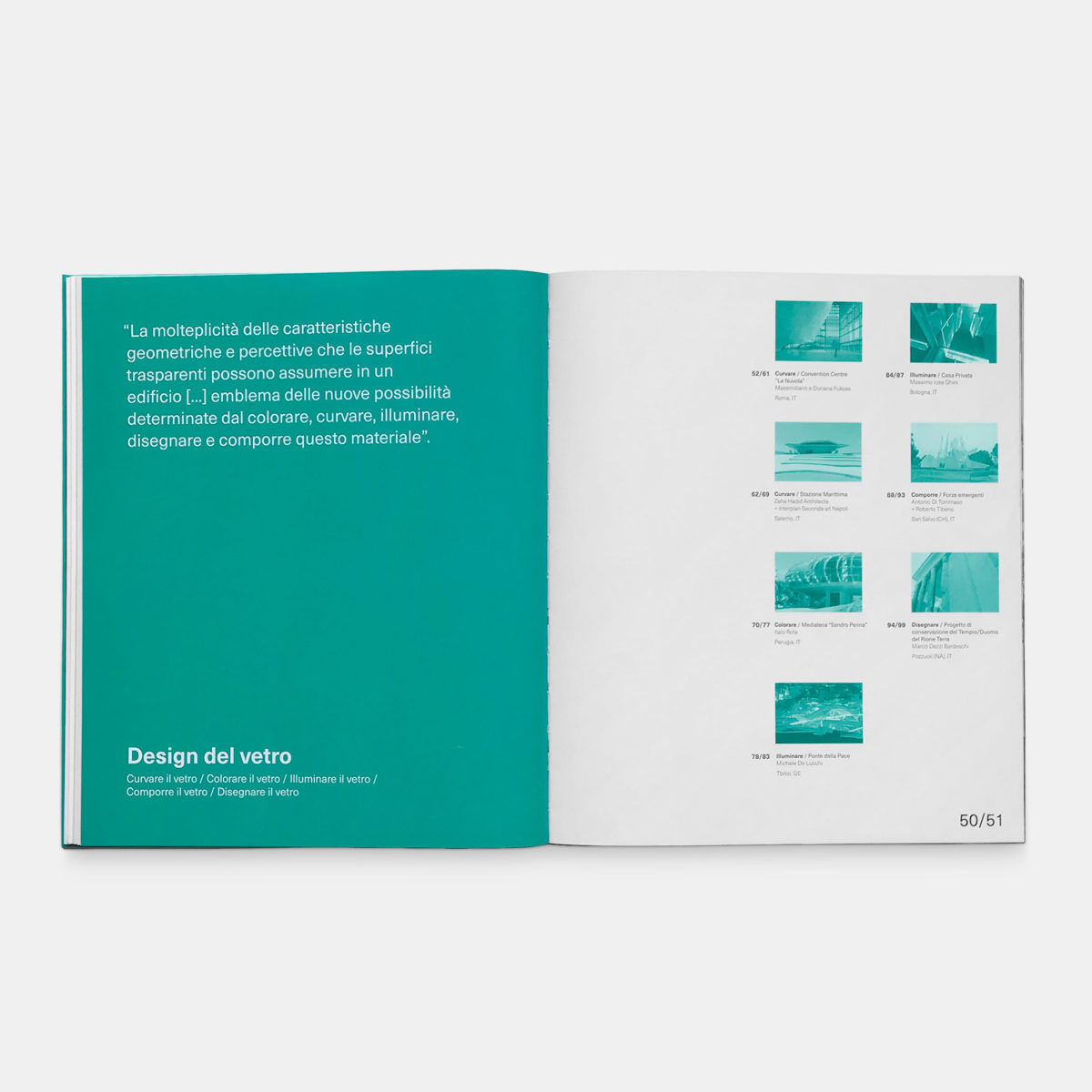 Design del vetro / Design col vetro sono i due macro-temi indagati dal curatore, selezionando per ciascuna modalità di impiego del vetro alcuni tra i più rappresentativi progetti realizzati da Faraone, dalla Nuvola di Massimiliano e Doriana Fuksas alla Stazione Marittima di Salerno di Zaha Hadid, dal Ponte della Pace di Michele De Lucchi alle Residenze Citylife di Daniel Libeskind, allo Stadio Nazionale dell’Albania di Archea Associati, solo per citarne alcuni