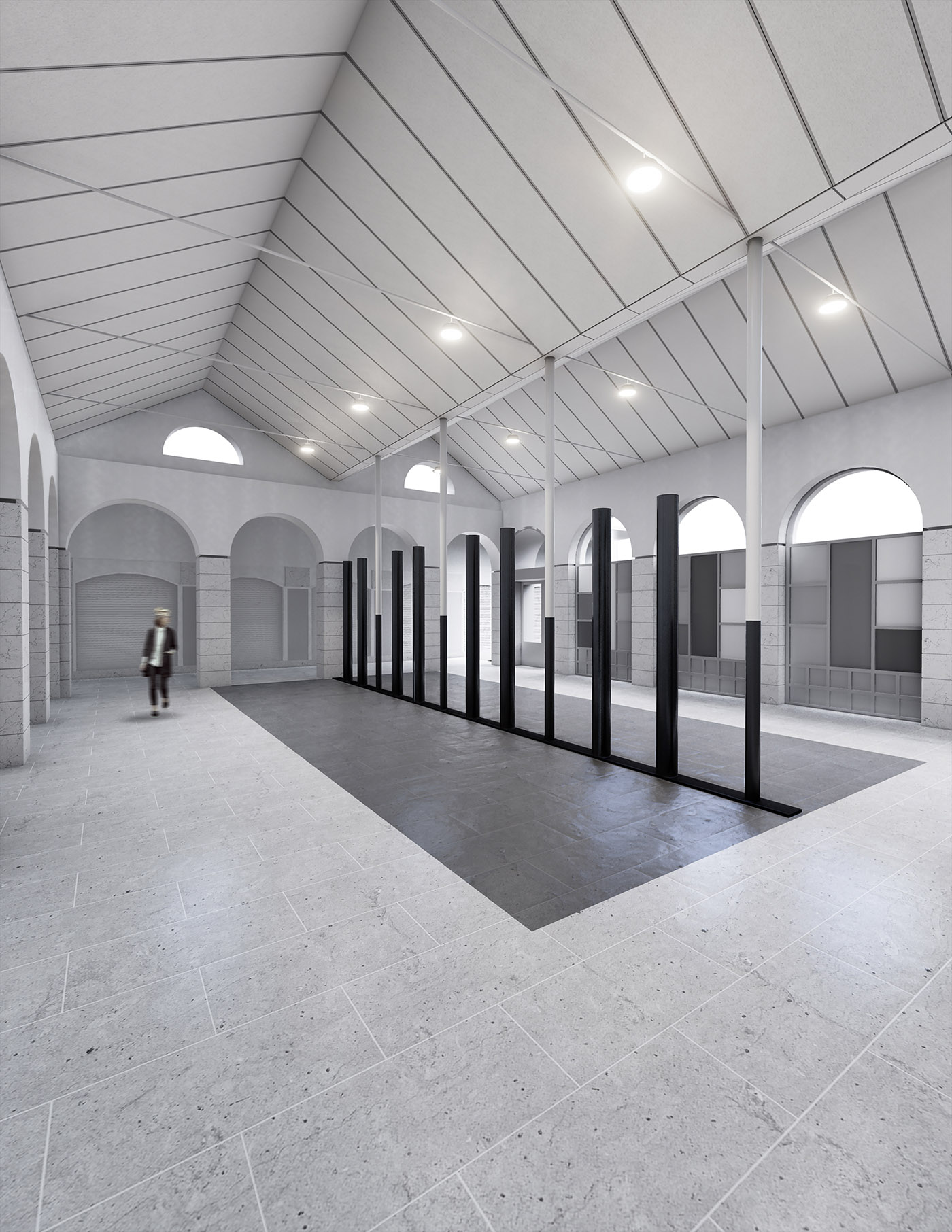 Il concept dell’installazione è un'analogia delle colonne esistenti; le 8 nuove colonne, con un'altezza di 3 metri e un diametro di 25 centimetri si integrano nel contesto da non protagoniste, in finitura nera, sembra che emergano dal pavimento: ci si può vagare intorno, ammirarle da vari punti o semplicemente toccarle. Queste colonne sono fabbricate con tubi da costruzione in cartone monouso