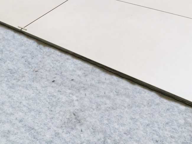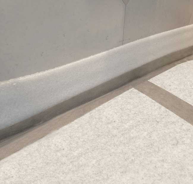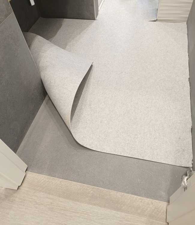 Isolamento acustico di un solaio esistente: Greenplatt è interposto tra vecchio pavimento o masset- to cementizio e nuovo pavimento tipo piastrella in ceramica, grès e marmo. L’abbattimento acustico verificato è di 29 dB