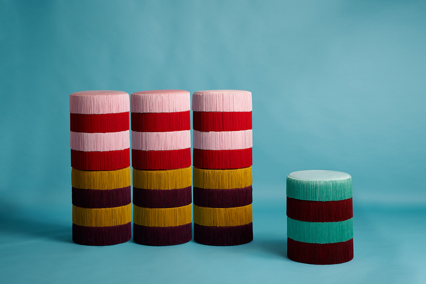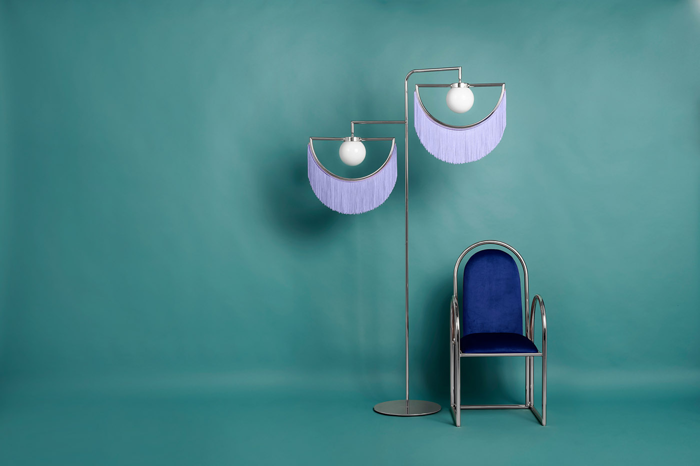 Collezione di lampade e sedute. Imbottiti, frange e metallo si uniscono ai colori vivaci