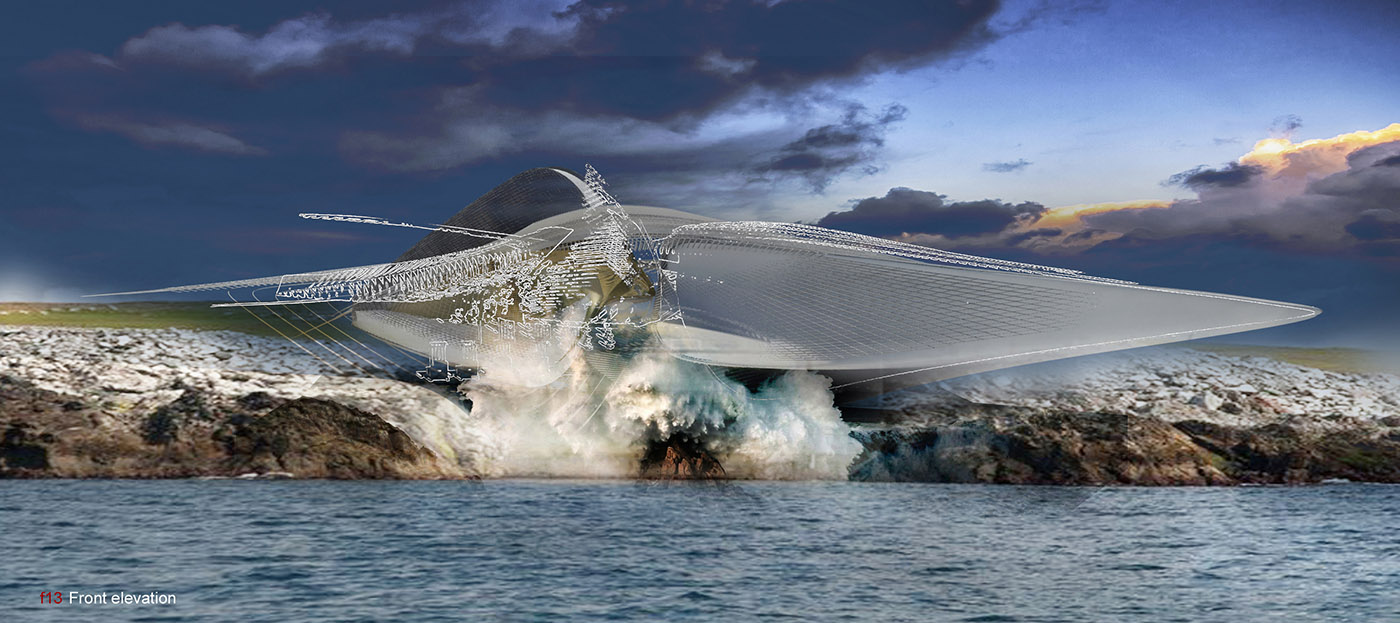 Il progetto utilizza l’energia rinnovabile per ridefinire le tipologie in architettura e l'ambiente costruito. Il sito si trova a Sochi, una città costiera sul Mar Nero in Russia. L'edificio utilizza il principio della colonna d'acqua oscillante per sfruttare l'energia delle onde, convertendo questa energia meccanica per generare elettricità. La piccola centrale elettrica è in grado di produrre fino a 300kW, al suo interno una galleria d’arte