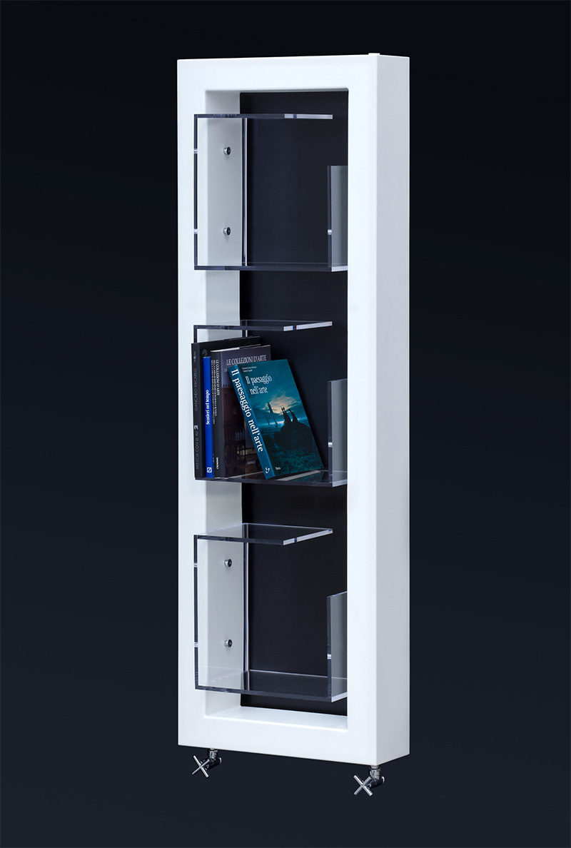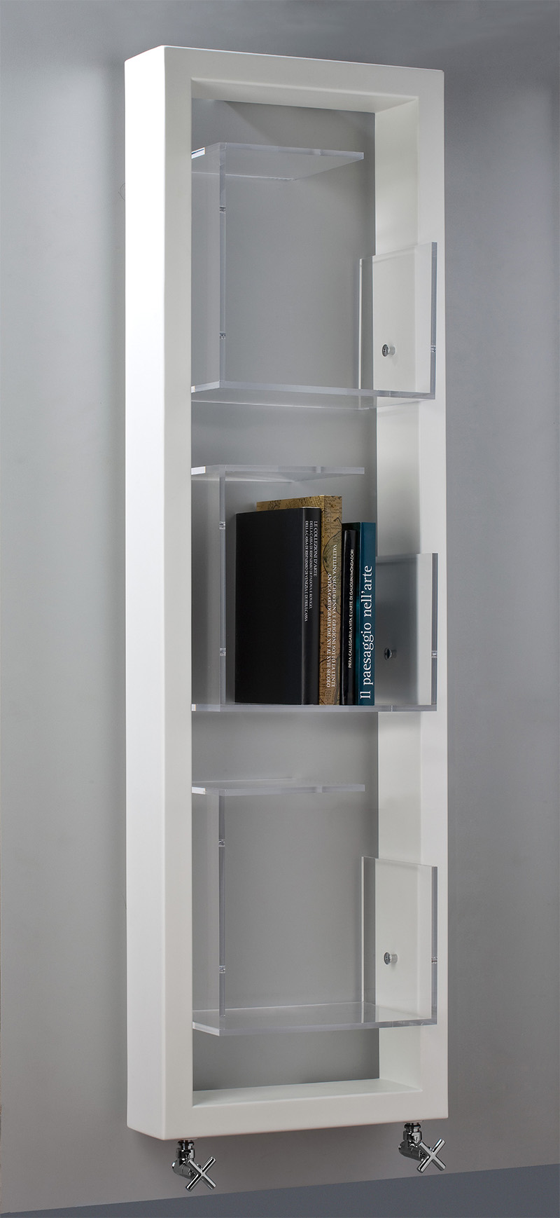 My Italian Design progetta invece Boxes rispondendo ad un esigenza fondamentale dell’abitare moderno, quella di ottimizzare gli spazi. Boxes è un oggetto di design che fonde insieme l’elemento scaldante con una vera e propria scaffalatura, il radiatore idraulico è infatti celato all’interno di una cornice suddivisa internamente in tre box trasparenti realizzate in polimero-metacrilato. Con i suoi “spazi-contenitore”, che possono essere utilizzati come ripiani per libri o oggettistica, Boxes è un radiatore molto versatile che si adatta bene a qualunque ambiente della casa