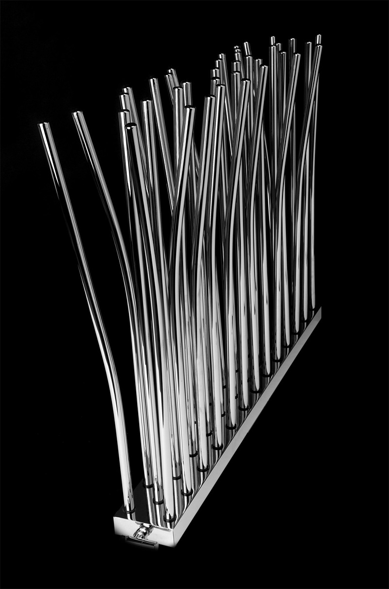 Dell’Acqua Bellavitis progetta per Deltacalor Bambù, un radiatore composto da una serie di elementi verticali flessuosi che sembrano ondeggiare come canne mosse dal vento. Bambù si svincola dalla parete, diventando una vera e propria installazione artistica all’interno del bagno infondendo all’ambiente raffinatezza e dinamismo. Le estremità arrotondate degli elementi tubolari addolciscono le linee di Bambù e lo rendono al contempo estremamente sicuro
