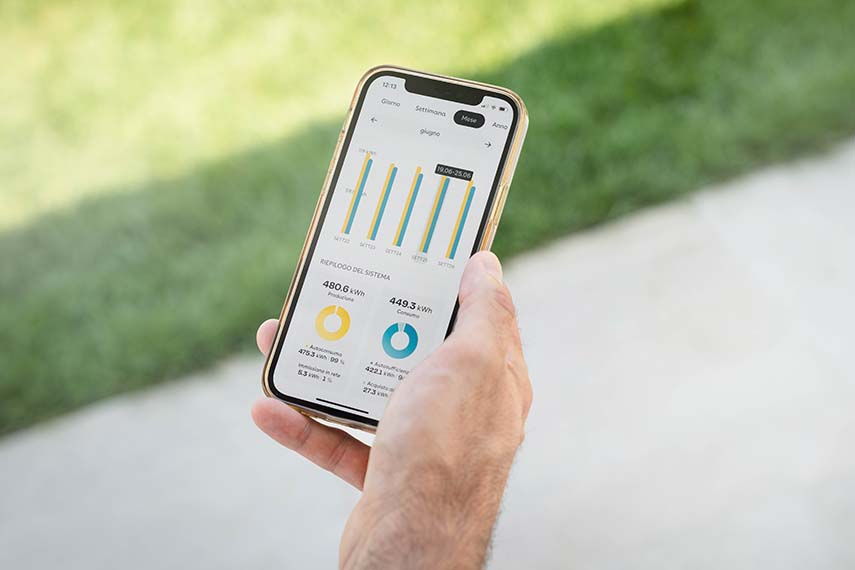 In particolare, sonnenBatterie, oltre ad accumulare l’energia prodotta in eccesso dall’impianto fotovoltaico, come un Energy manager intelligente gestisce e ottimizza tutta l’energia della nostra casa, in base alle nostre esigenze. In più, con sonnen App possiamo monitorare in tempo reale l’andamento dei nostri consumi.
