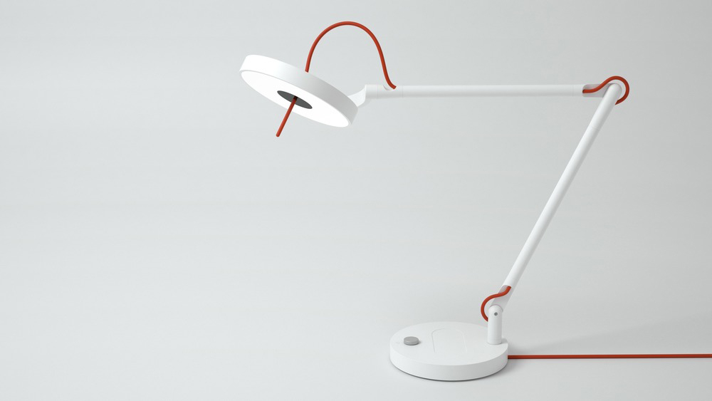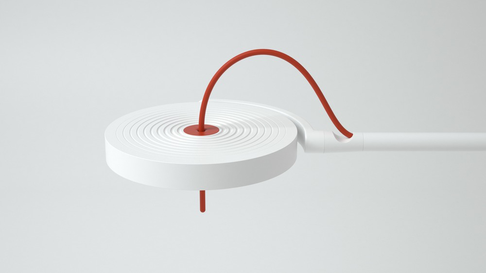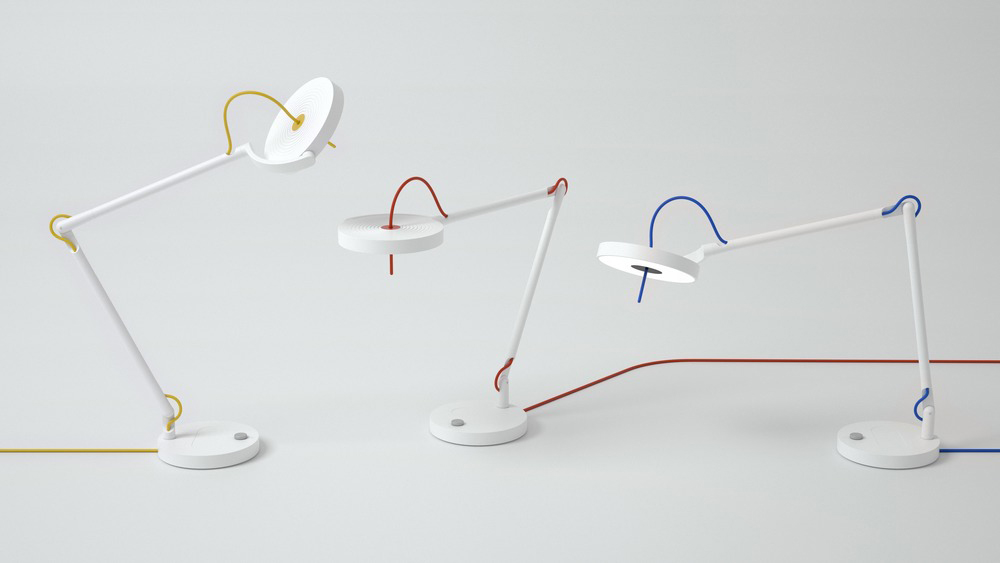 Realizzato in alluminio laccato in bianco incontaminato, la lampada rivela il suo lato giocoso con un cavo colorato a colori primari in blu, rosso o giallo. L'app Web e mobile consente agli utenti di programmare e gestire le esigenze di connettività e illuminazione individualmente o in gruppo. I privilegi possono essere impostati per gruppi di lampade, lampade specifiche o singoli utenti