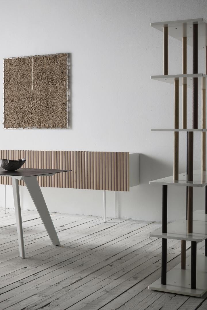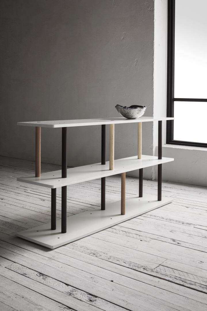 Nasce da un'idea: un mobile non è per forza un oggetto statico ma può adattarsi alle necessità di chi lo usa, prestandosi facilmente ai cambiamenti d'ambiente e alla tipologia e quantità di oggetti che dovrà contenere. Per questo, LightsOn e Gianmaria Sforza hanno dato vita ad un sistema che permette ben 256 configurazioni diverse, a partire da una delle posizioni possibili del ripiano, uno dopo l’altro, per un’altezza di 187 centimetri