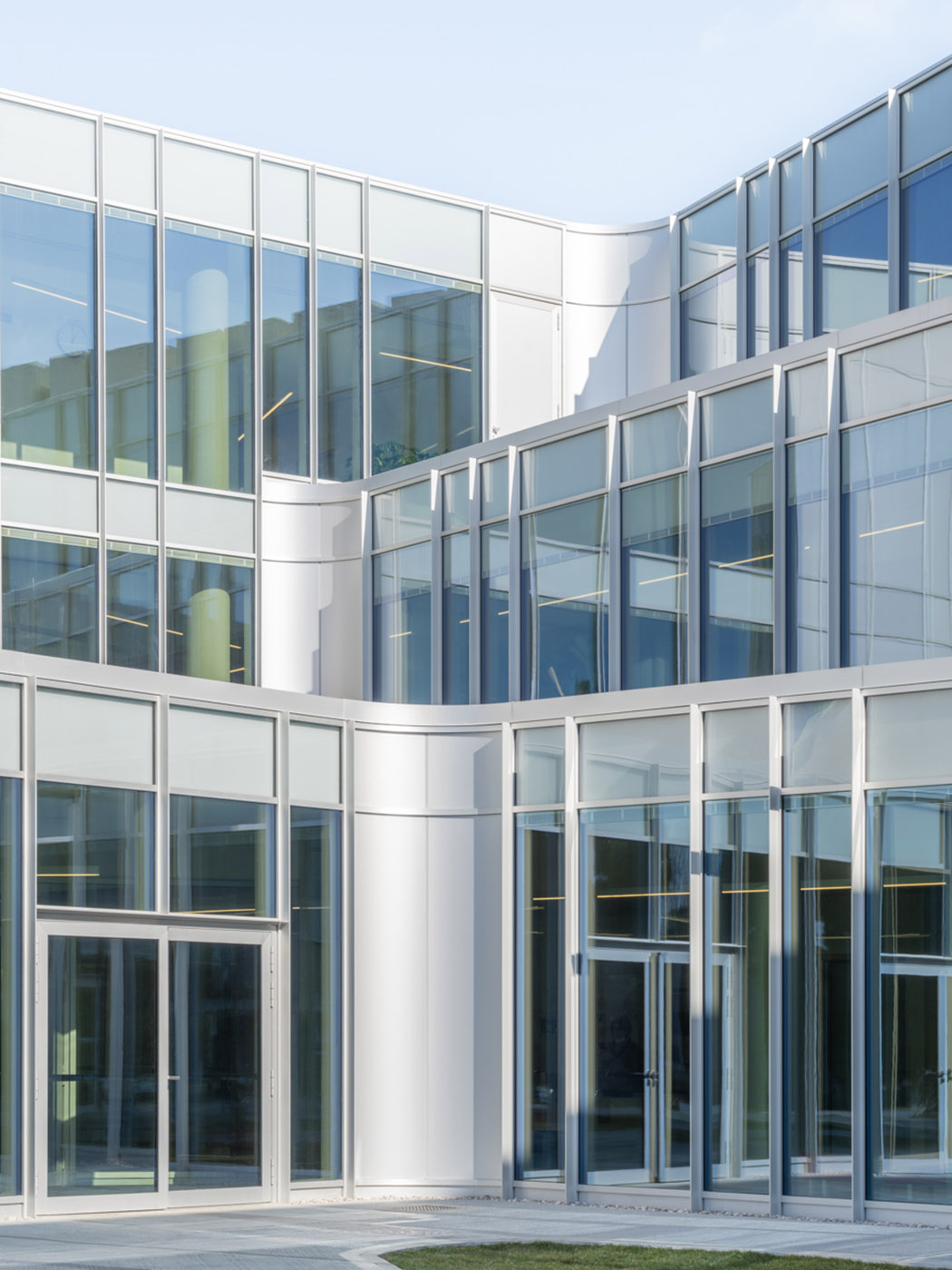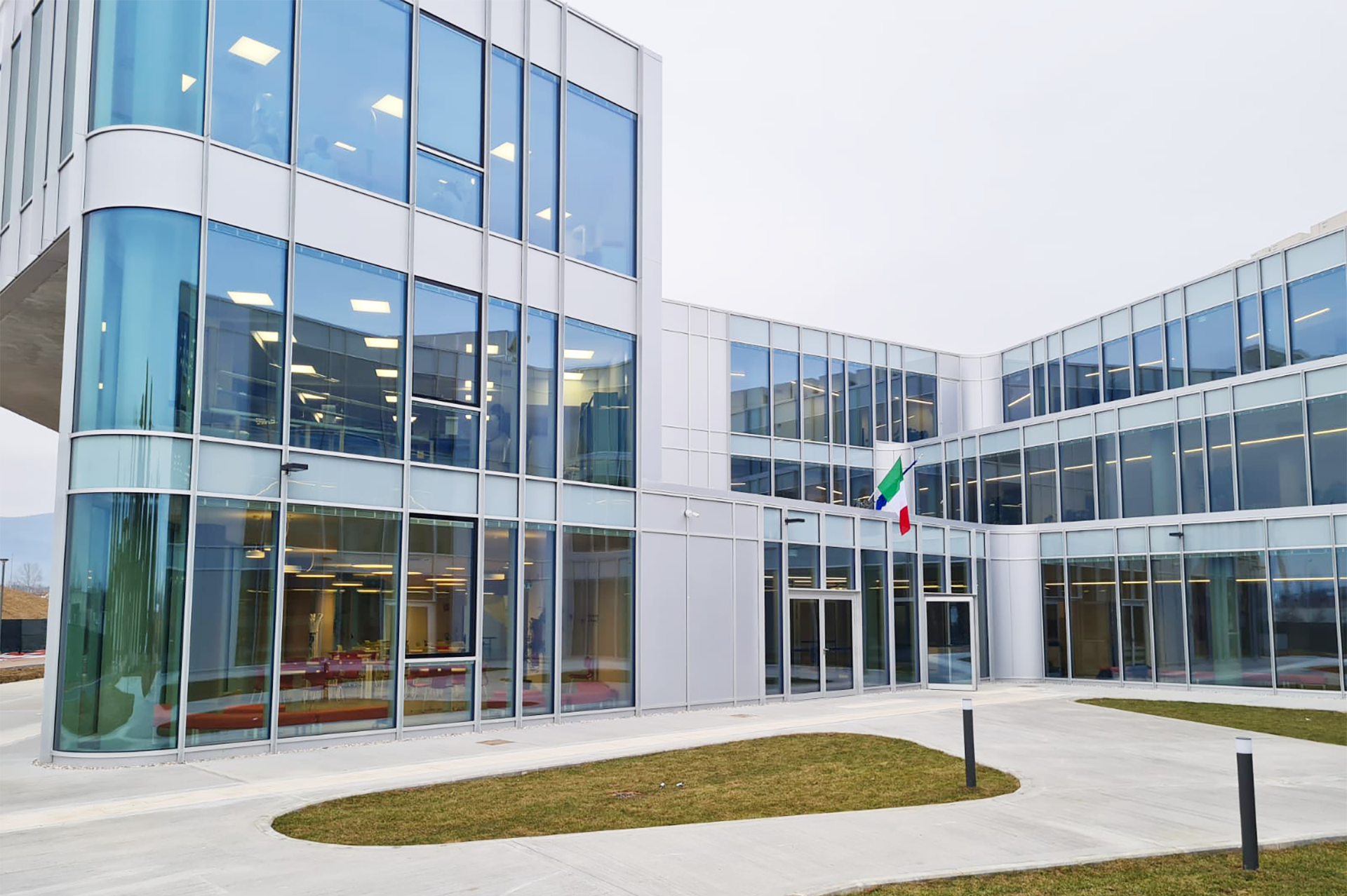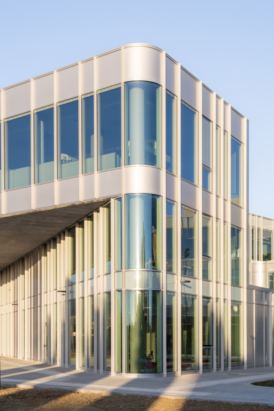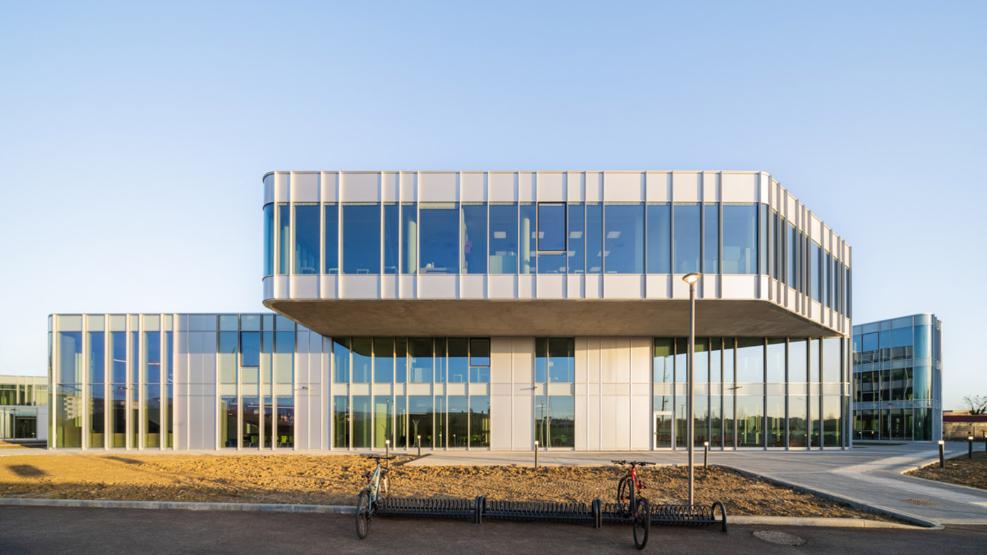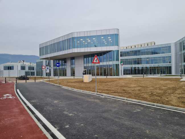 Ad est la presenza dei laboratori universitari, dal carattere rigoroso e funzionale, ha determinato l’inversione della proporzione trasparente/opaco. Ampio risalto è stato dato inoltre alla progettazione degli spazi connettivi, non solo utilizzati per la movimentazione degli studenti ma anche per l’organizzazione di attività didattiche complementari.
