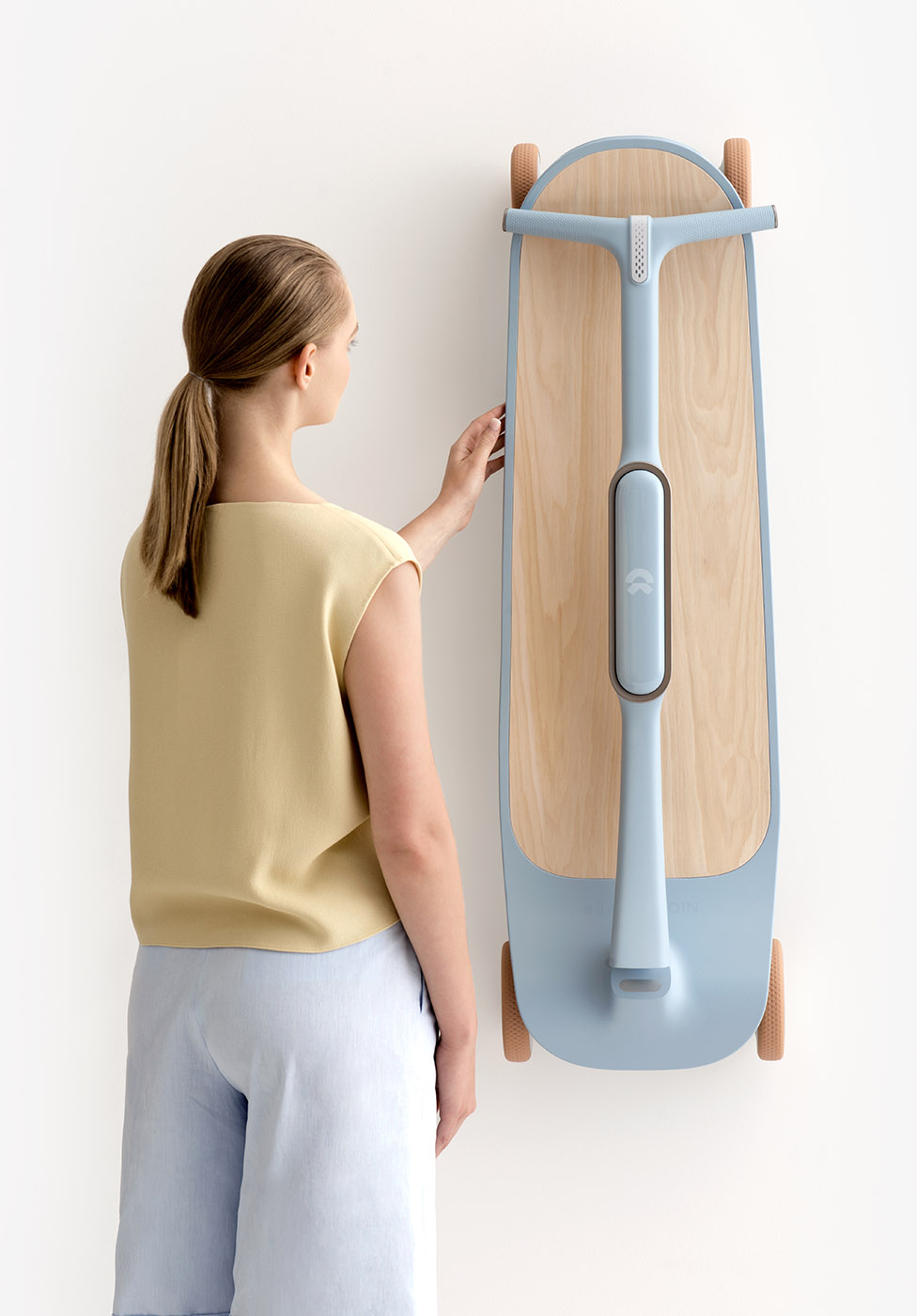 Benjamin Hubert dello Studio Layer ha progettato, per la società di veicoli elettrici NIO, PAL un monopattino intelligente che abbraccia l'intelligenza artificiale e il controllo automatico per offrire flessibilità agli spostamenti a corto raggio