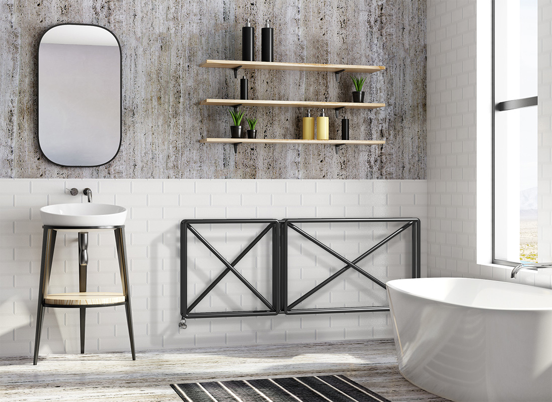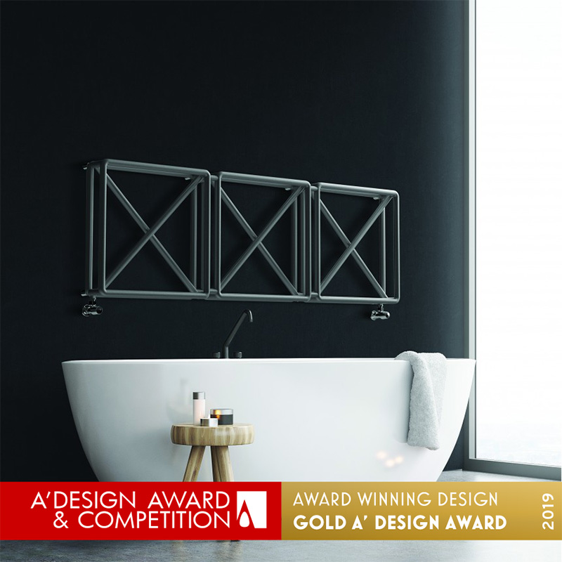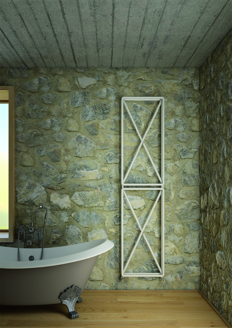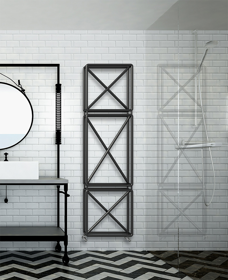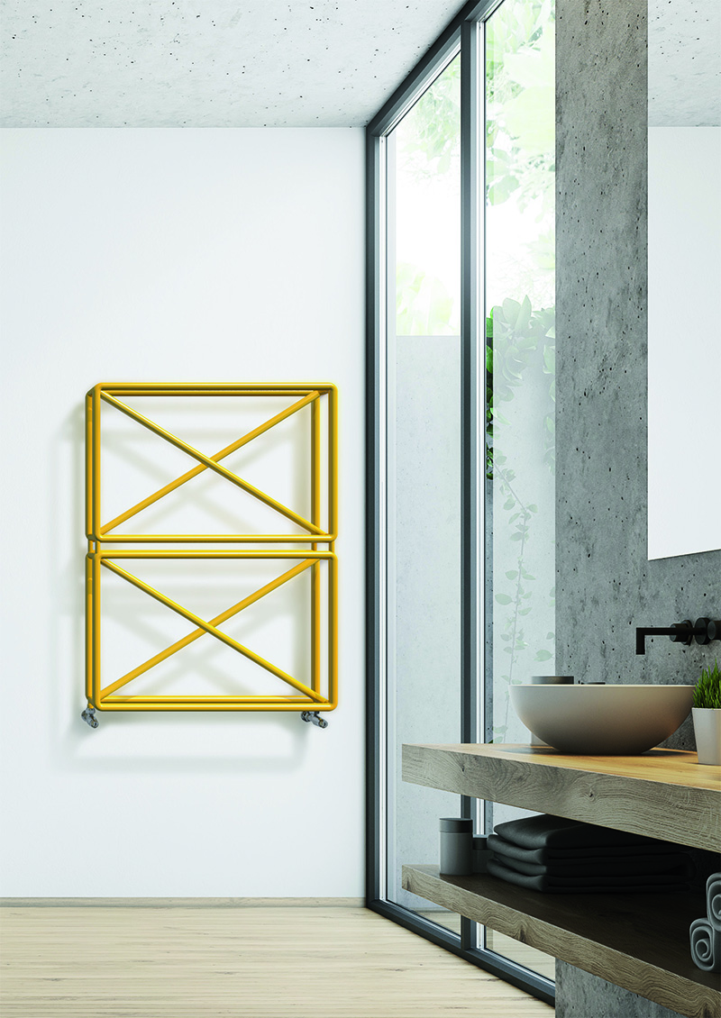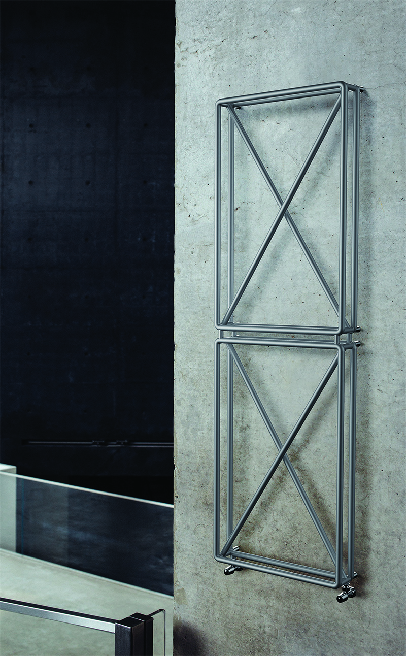Spiega il designer: “Spesso disegniamo una X per eliminare qualcosa, ma anche per indicare un punto in cui posizionare, forare, arrivare. Credo che avesse un grande potenziale estetico e ho pensato di usarla per attenuare il peso visivo di un prodotto di grandi dimensioni come un calorifero”.