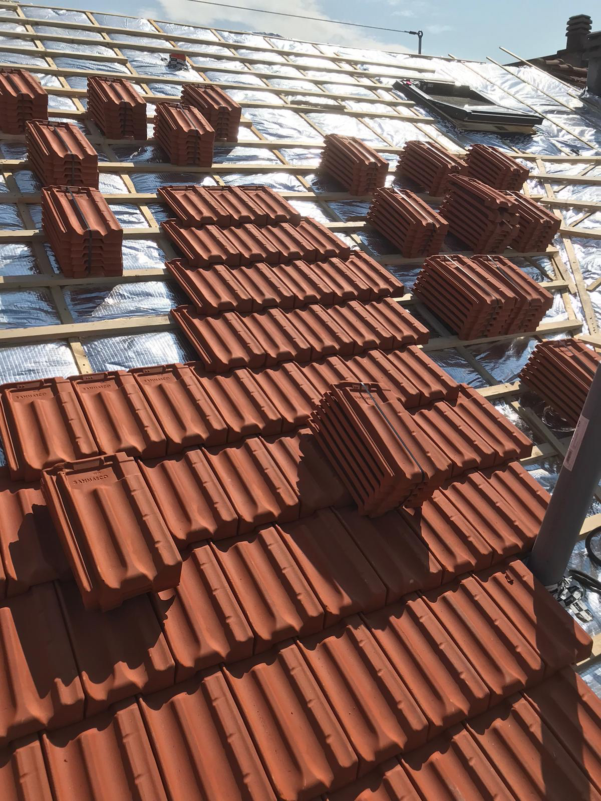 Il Pacchetto tetto è stato realizzato con un doppio strato di isolante termo-riflettente Over-foil Multistrato 19 di Over-All, di cui il primo strato posato sulla listellatura lignea porta tegola esistente e il secondo strato installato tra due ulteriori listelli di legno per uno spessore totale del pacchetto isolante, escluso il nuovo listello porta tegola, pari a soli 9 cm