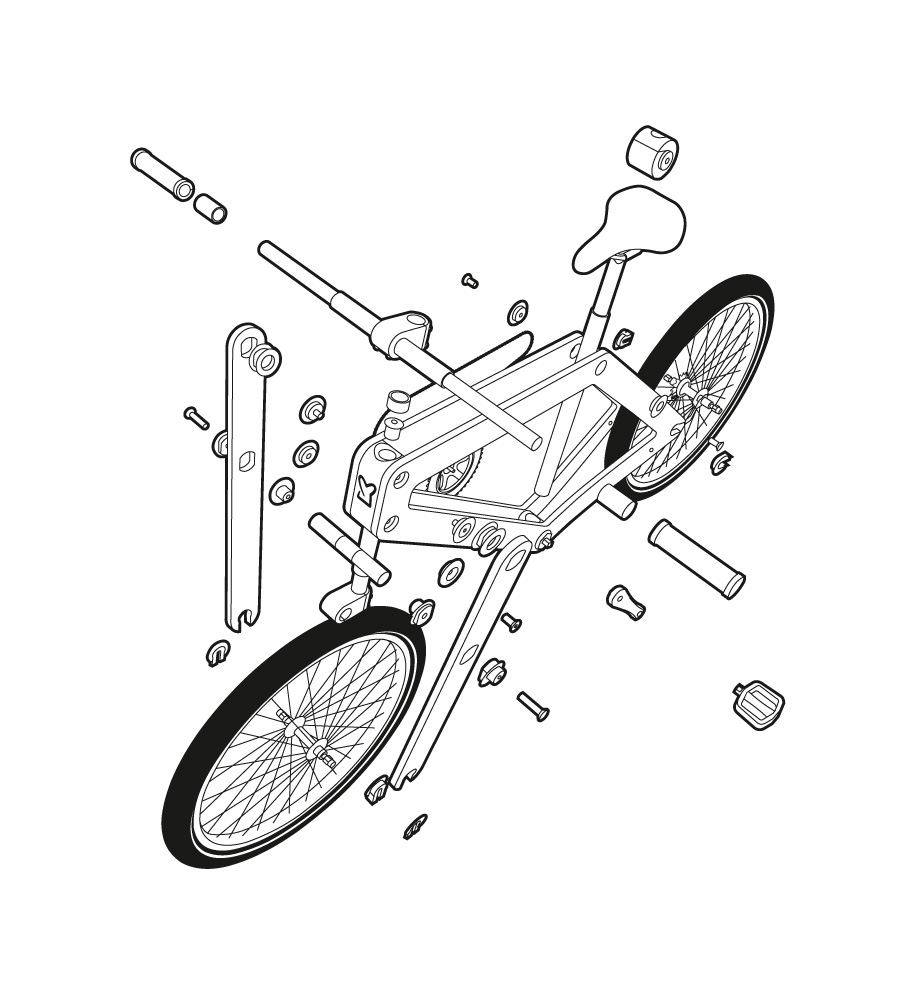 La Sandwichbike smontata si inserisce in un piccolo pacchetto piatto, rendendo facile anche la spedizione per posta. Tutto ciò che è necessario per montarla si trova nella confezione, inclusi gli strumenti