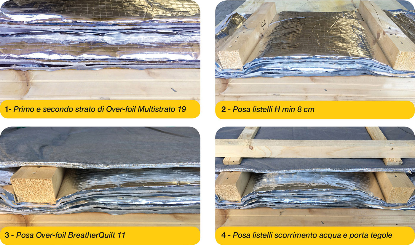 Il primo,grazie alle sue elevate prestazioni di isolamento termico testate in accordo alla nuova norma di riferimento UNI EN 16012, è l’isolante ideale per contenere gli spessori, mentre il secondo è un materiale isolante termoriflettente in alluminio puro microforato che, essendo dotato di un layer esterno in TNT impermeabile ed altamente traspirante, è l’ideale per essere utilizzato come ultimo strato isolante sotto tegola