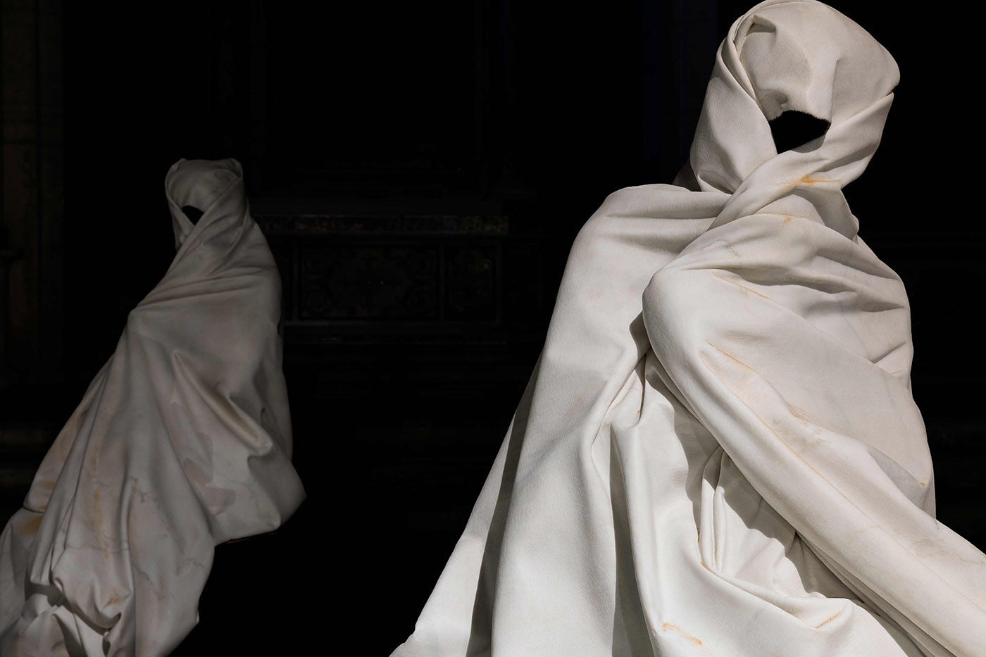 L’opera delle Tre Grazie per la Chiesa di sant’Agostino, una scultura in marmo bianco, dettagliatissima nei particolari del panneggio, ha come soggetto tre donne originarie dalla città di Ghardaia in Algeria, con cui Viale è entrato in contatto durante uno dei suoi frequenti viaggi. Tramite la figura delle donne, che sono costrette ad indossare un burka fino ai piedi, l’artista pone l’accento sul tema della libertà negata e sulla percezione scontata che ne hanno gli occidentali che, proprio adesso, in momenti di forte limitazione, ne avvertono la misura