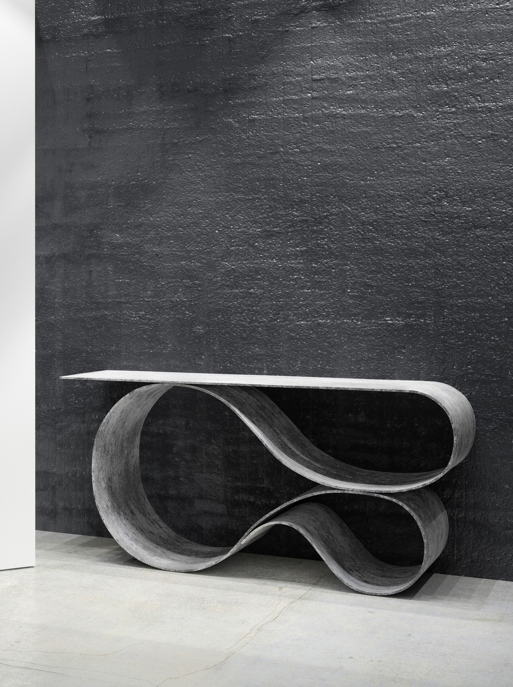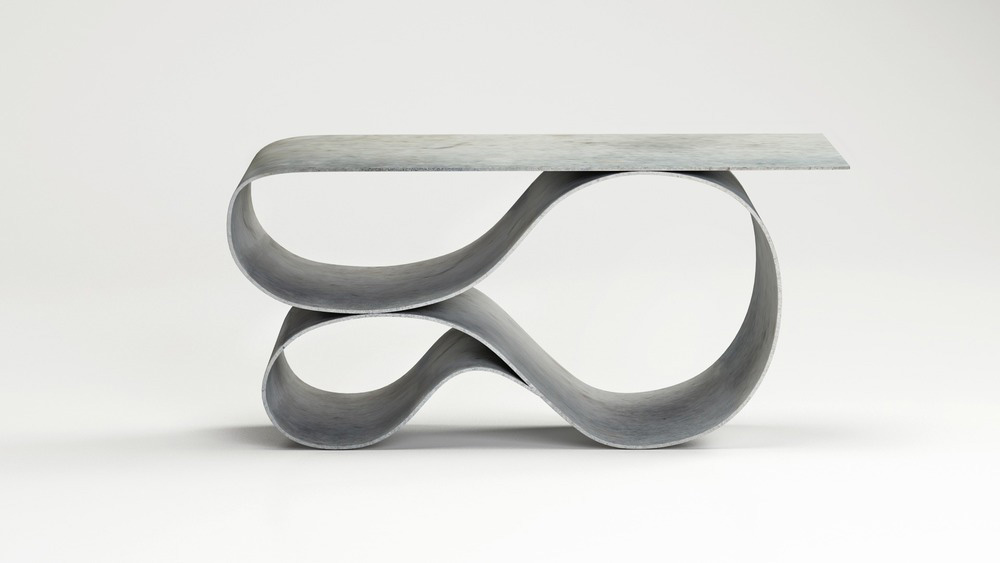 L'innovativa consolle è realizzata da Neal Aronowitz Studio in un tessuto impregnato di cemento brevettato usato raramente nella progettazione di mobili. Un nuovo materiale che consente di utilizzare il calcestruzzo in modi radicalmente innovativi