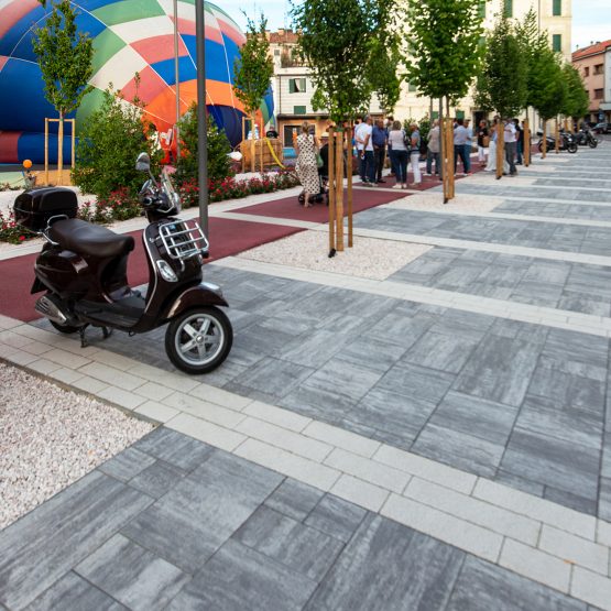 La pavimentazione Viale Navona unisce il fascino della tradizione con un linguaggio contemporaneo. La sua estetica modulare e dinamica permette di creare superfici raffinate e armoniose, trasformando gli spazi esterni in scenografie architettoniche dal forte impatto visivo.