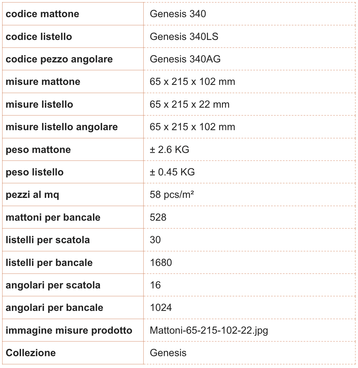 Genesis 340 è un mattone faccia a vista che porta negli spazi architettonici carattere, storia e matericità. La superficie è segnata da spigoli irregolari, leggere abrasioni e residui di malta, evocando l’aspetto dei mattoni di recupero. Un effetto volutamente imperfetto, capace di restituire autenticità e calore a ogni progetto.