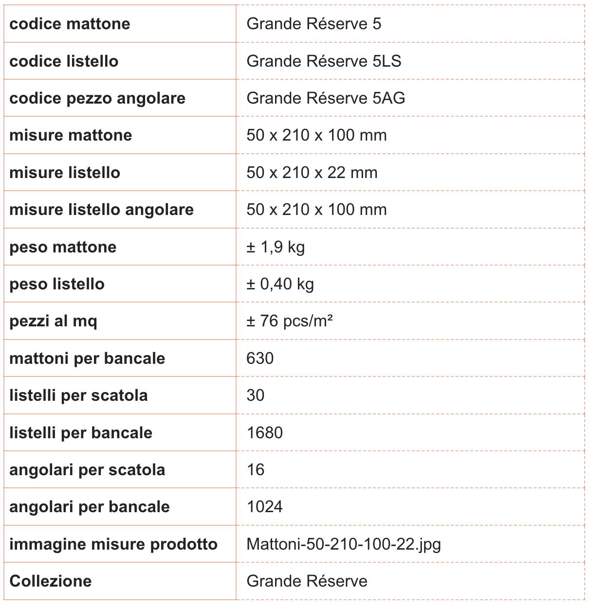 Grande Réserve 5 appartiene alla linea Grande Réserve, una collezione limitata che nasce dalla selezione di argille nobili e da un lento processo di cottura a 1200°C in un antico forno circolare dei primi del ’900. Ogni mattone è il risultato di un saper fare artigianale tramandato da generazioni, che conferisce al prodotto un valore unico e irripetibile.