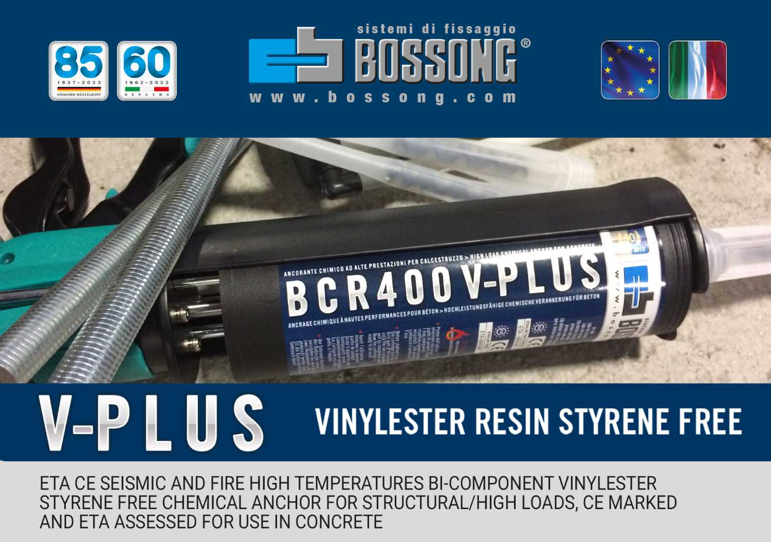 Resina vinilestere sismica per barre e ReBar – BCR V-PLUS
