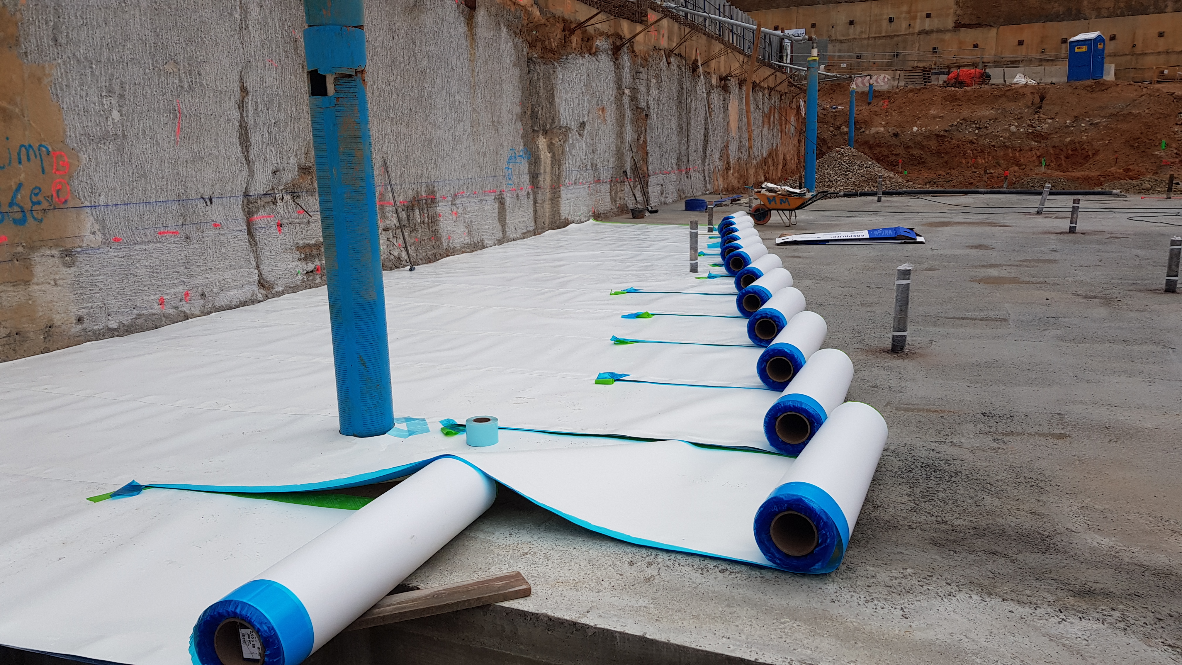 La membrana è immediatamente calpestabile e non necessita di rivestimenti protettivi, consentendo così di posare le barre di armatura nello stesso giorno della sua posa.