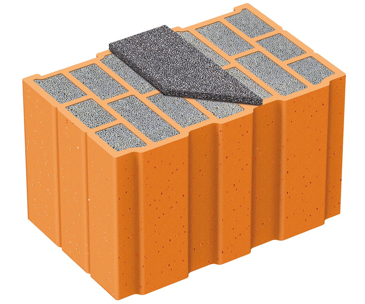 Blocco in laterizio porizzato con fori saturati di polistirene additivato con grafite Neopor® di BASF, dotato di incastro verticale a secco e con una percentuale di foratura superiore al 60%. Questa soluzione avanzata è pensata per garantire elevate prestazioni termiche e meccaniche.